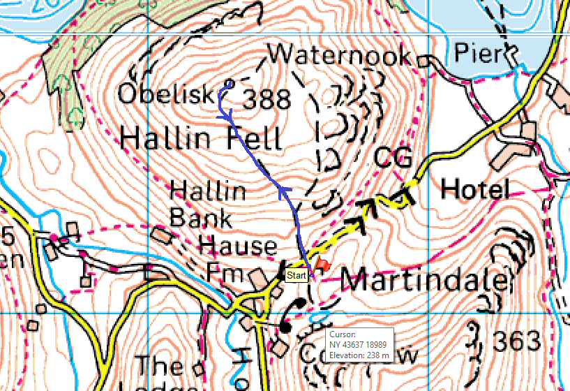 | Distance – 1.5 miles Start time – 14.15pm Time taken – 1 hr Highest Point – Hallin Fell 388m |