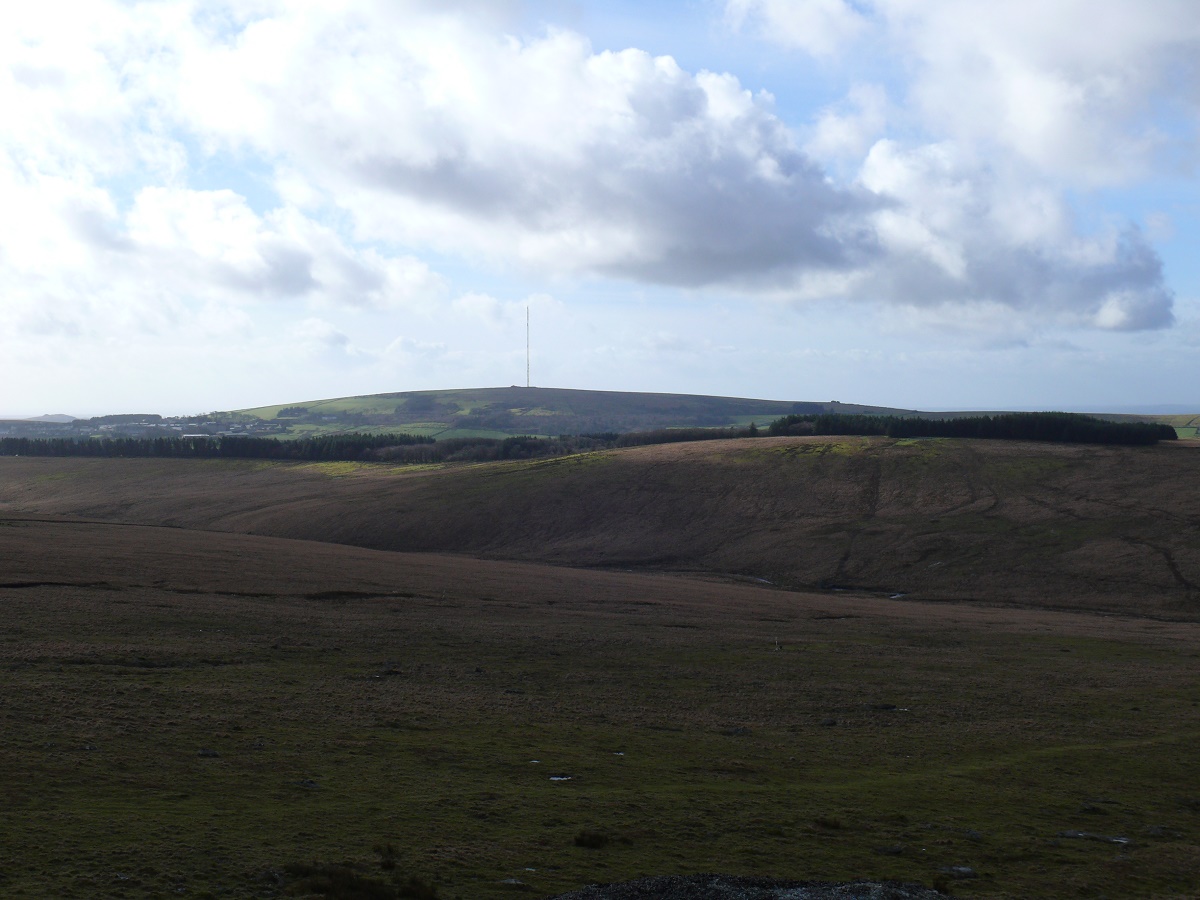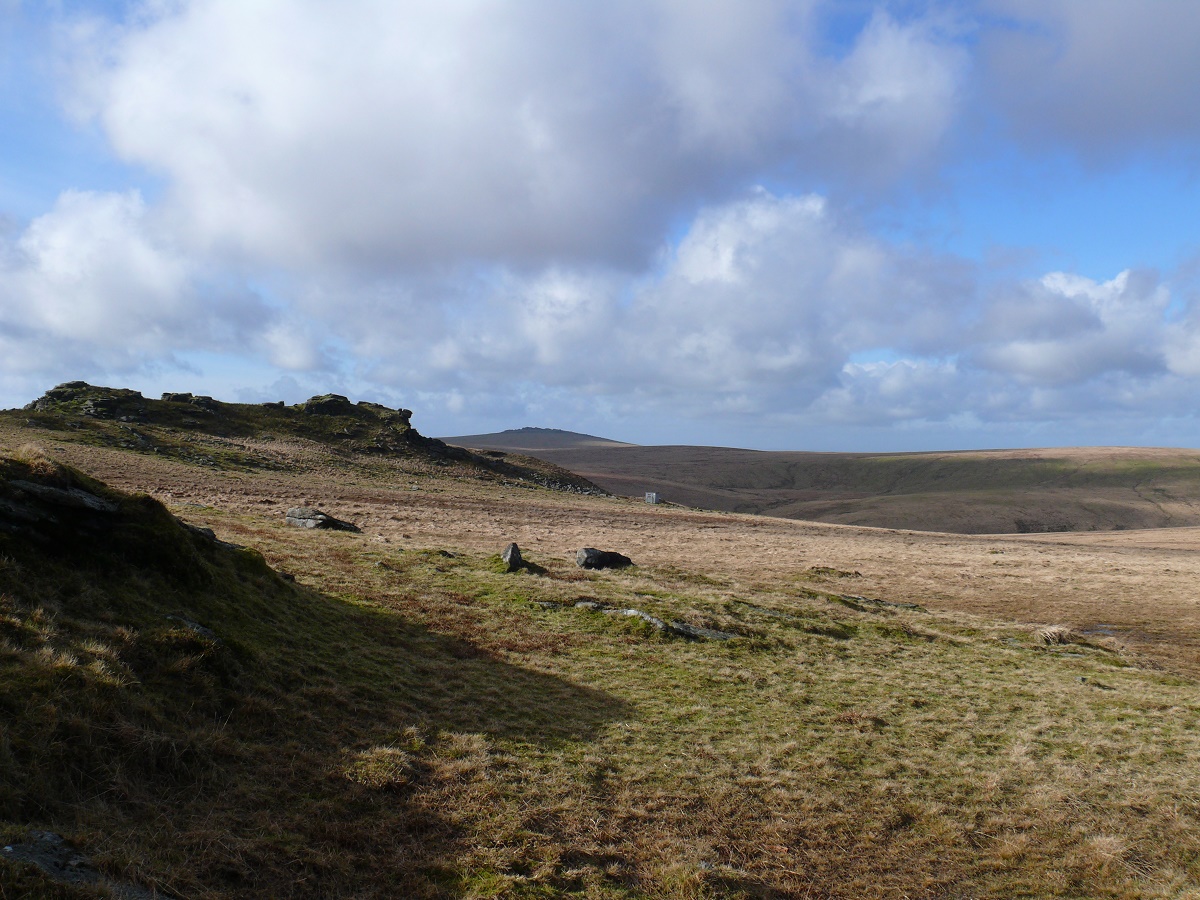 Looking across to the other Beardown Tor and the military observation hut. Great Mis Tor in the distance