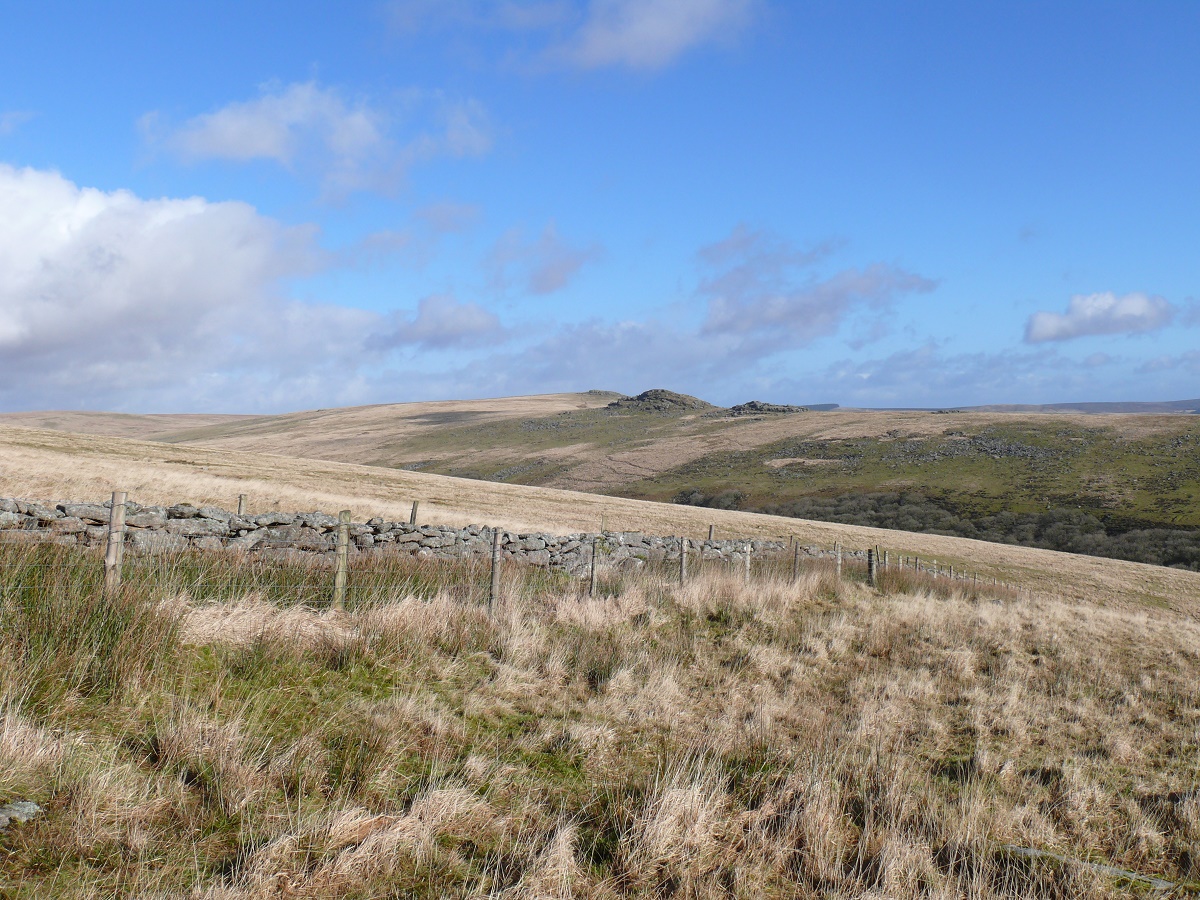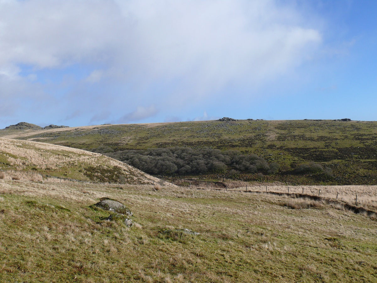 Heading up to Beardown Tor looking across Wistman’s Wood to Liitaford Tor with Longaford Tor on the left