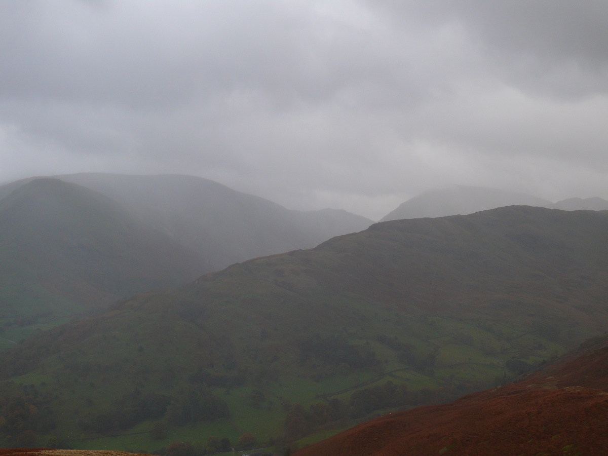 We have come to The Lakes in autumn for a week to sample the changing colours and weather at this time of year, with that there will hopefully be less bracken than in the summer as well!! We were staying in Troutbeck, so whilst waiting for the house to be ready, we popped over the Kirkstone Pass to Patterdale for a quick walk to stretch the legs after a long journey. The rain had stopped and we took a chance, only to get a deluge when we reached the summit!