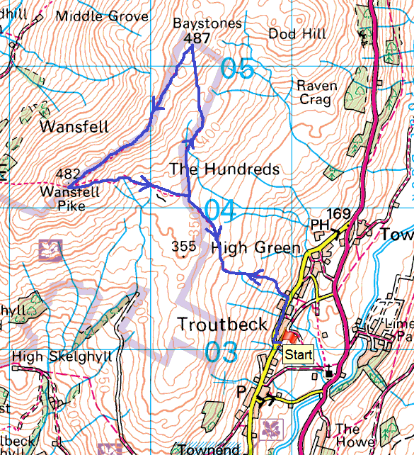 | Route – Nanny Lane – Wansfell – Wansfell Pike – Nanny Lane – Troutbeck |