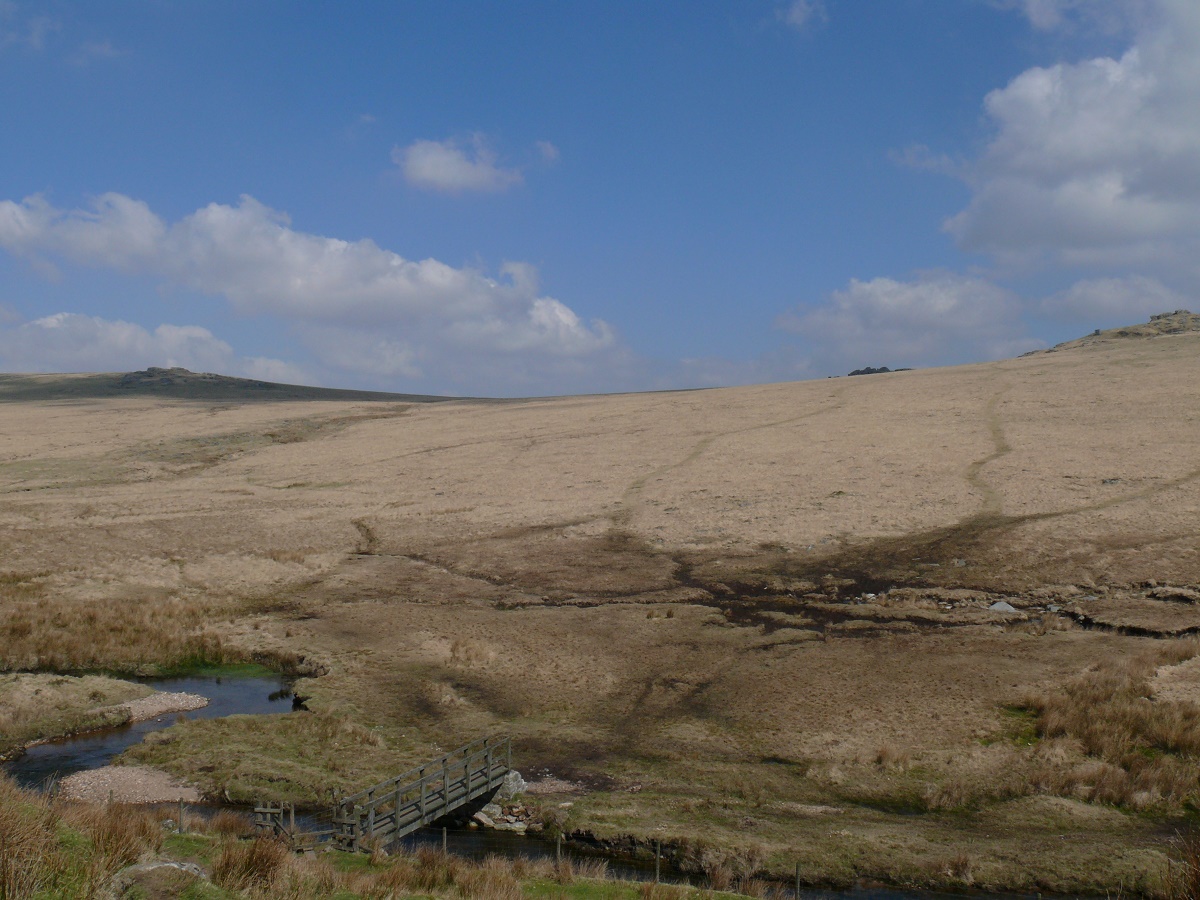 Cowsic Bridge below and the boggy bit on the hill just past the bridge
