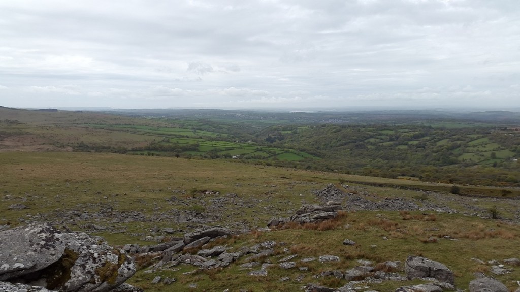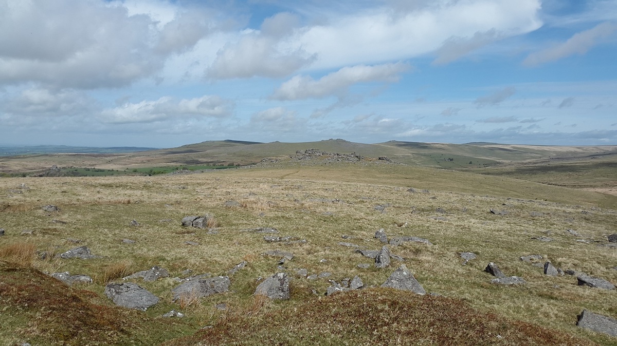 Similar to the first view, from l to r Sheeps Tor, Leather Tor, Sharpitor and Leeden Tor