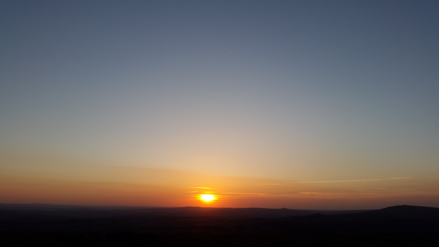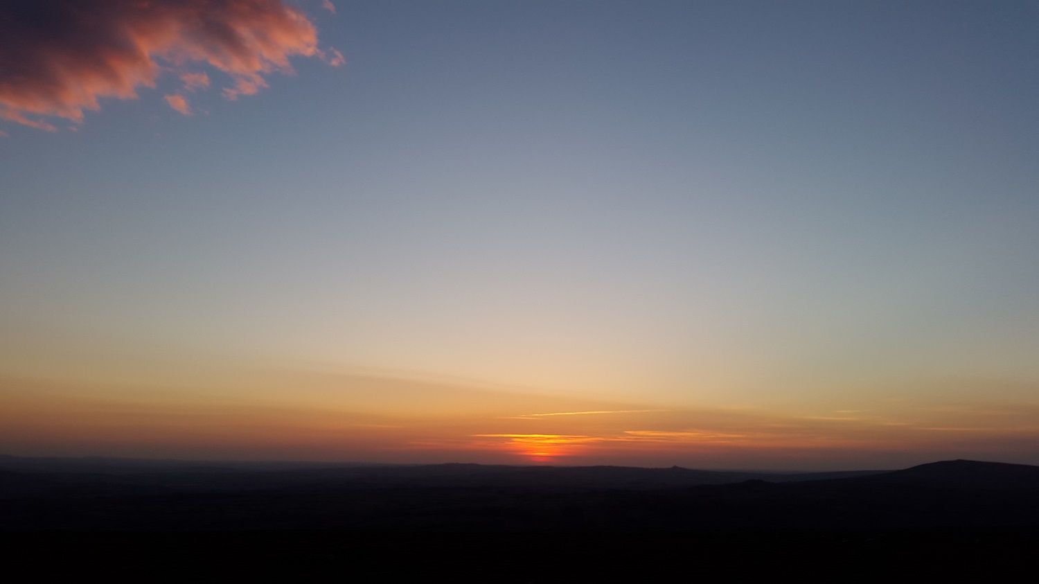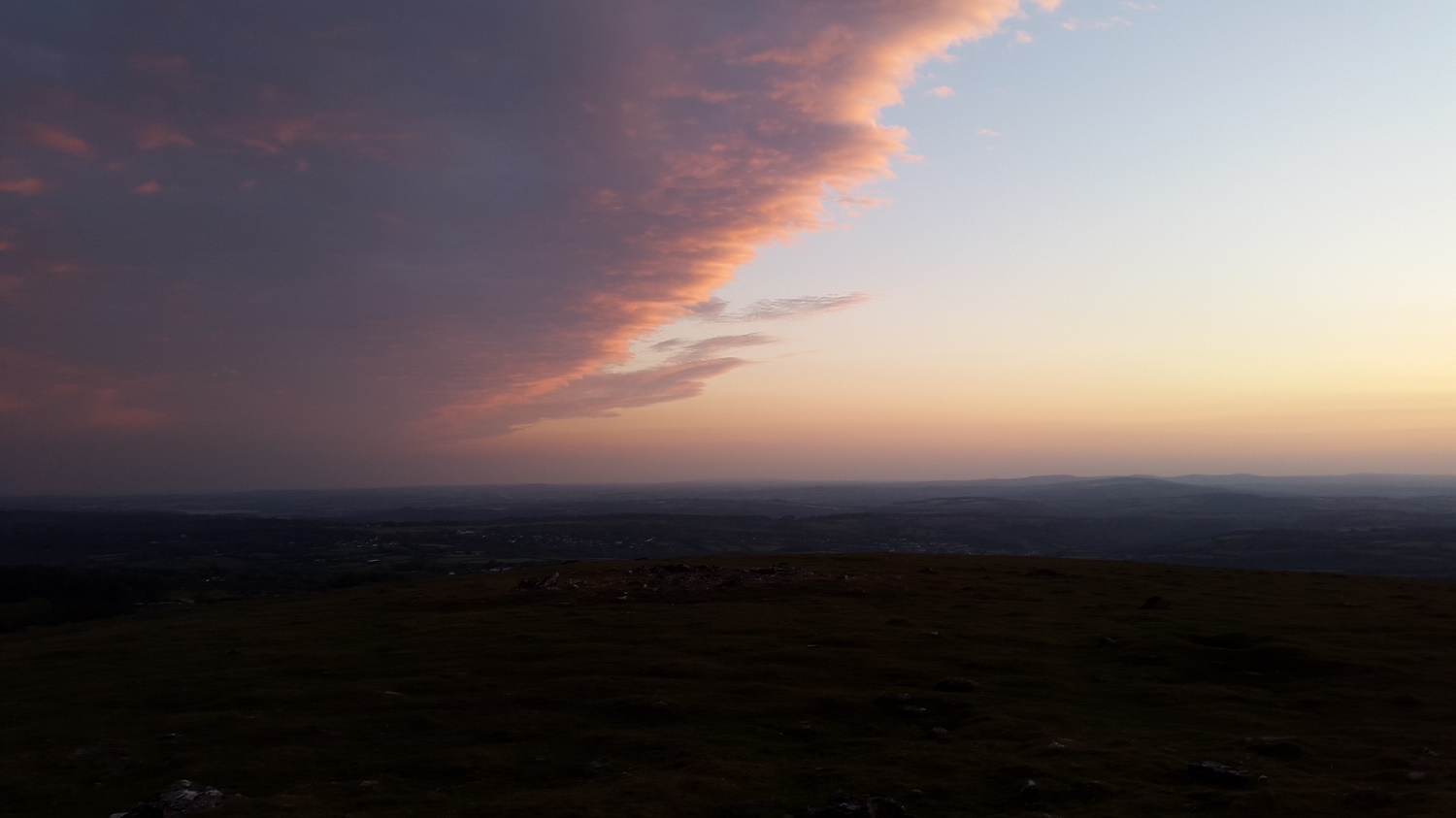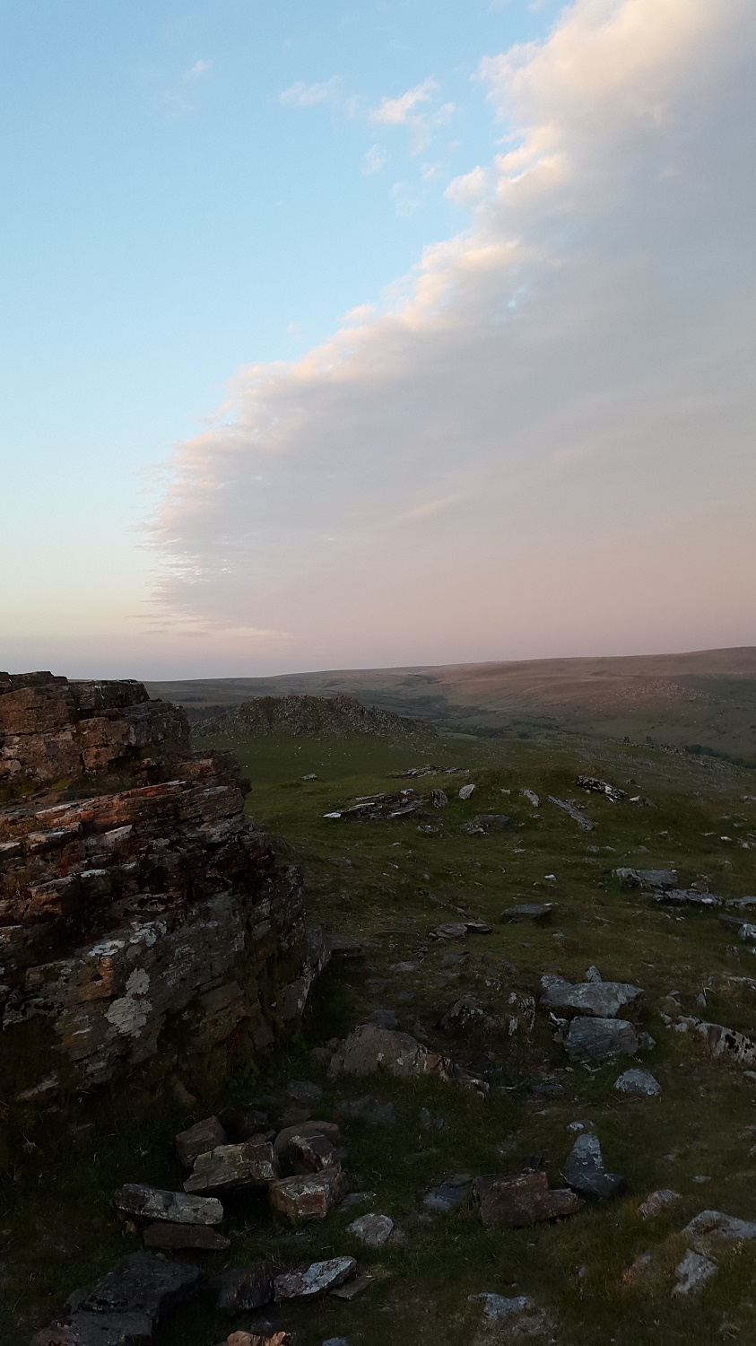 Cox Tor silhouetted to the right and the bump of Brentor away in the distance