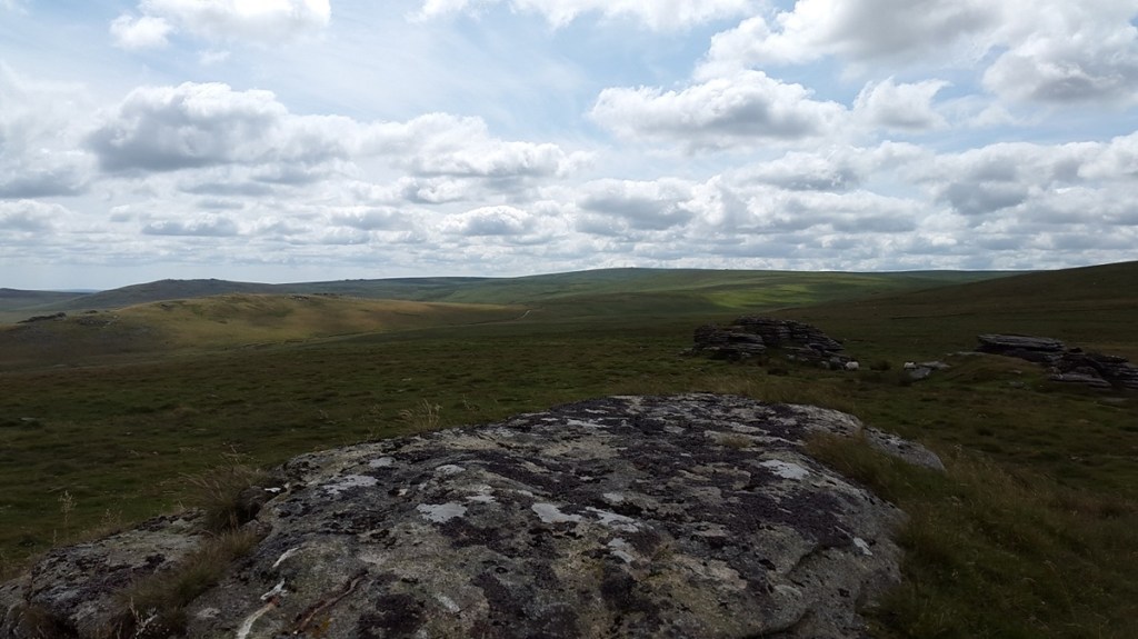 A walk to prepare for a week in the Lake District which is coming up at the start of August. Starting from a new place for me, beside Okehampton Camp, I made for Yes Tor taking in a couple of other tors on the way. Once at High Willhays I extended the walk down to Lints Tor and back via Dinger Tor. Cows seemed to be everywhere and not being my favourite animal, plenty of deviations were needed!!