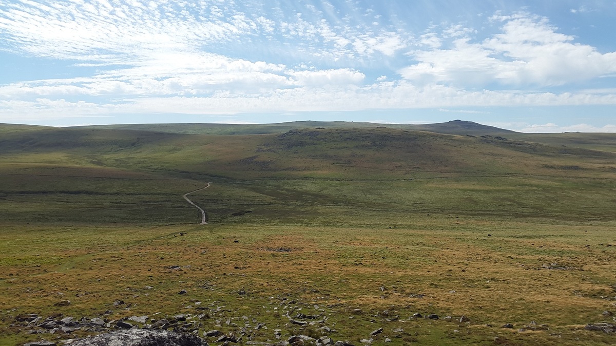A fair chunk of today’s walk in the picture, 1st will be East Mill Tor to the right, Okement Hill, Hangingstone Hill at the back and Oke Tor far leftThe view north from East Mill TorAnd again with Cosdon Hill to the rightOkement Hill in the centre and Hangingstone Hill back leftCosdon HillOn the track to Okement Hill, looking back to Yes Tor left and East Mill Tor on the right. Those two had been camping overnight with their young baby and were heading back to their car.Same place but looking to Cosdon Hill furthest rightOkement Hill with High Willhays and Yes Tor beyondHeading to Cranmere Pool across typical terrain, that is a faint path on the right which took me all the way to CranmereCranmere Pool and two fellas having a snooze!!Cranmere Pool LetterboxBoggy across here. The head of the East Dart river is in the picture, the head of the Taw river is behind me and Cranmere Pool to my right!!Whitehorse Hill, unfortunately the cairn is now on the floor. The burial site is under the peat mound on the rightFernworthy Forest from Whitehorse HillWhitehorse Hill with High Willhays in the distance left and Hangingstone Hill to the rightHangingstone Hill looking to Cosdon Hill on the rightSame place but looking to High Willhays and Yes TorObs post on Hangingstone Hill with Cut Hill behindHeading down to Knack Ford, with Steeperton Tor to the rightKnack Ford, which meant a head dunk as it was getting warmOP17 looking to Oke Tor and Belstone Tor behindOke Tor looking to High Willhays and Yes TorOke Tor looking back to Steeperton Tor to the left and Hangingstone Hill in the distanceBack at the start after a lovely walk around north Dartmoor