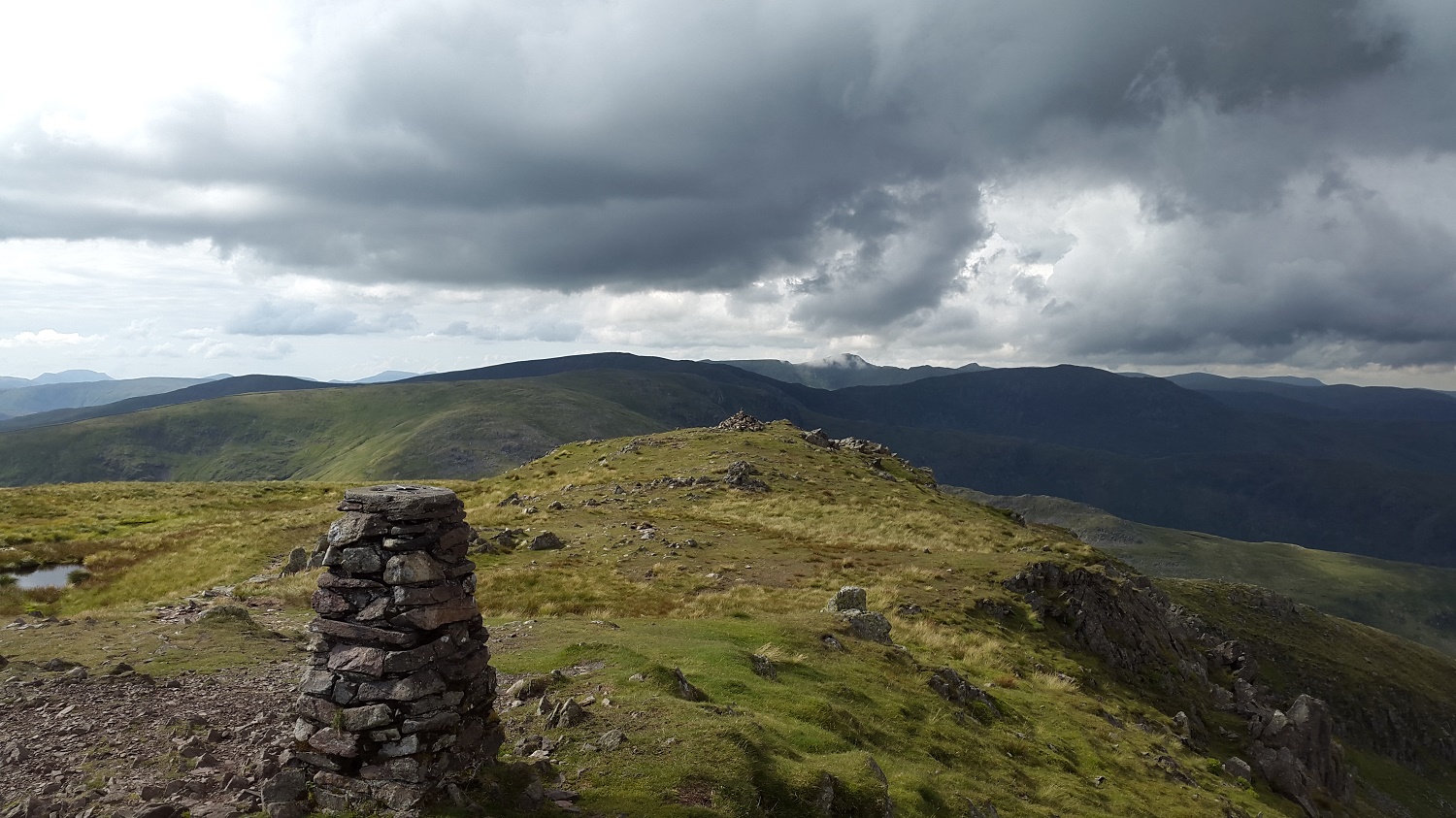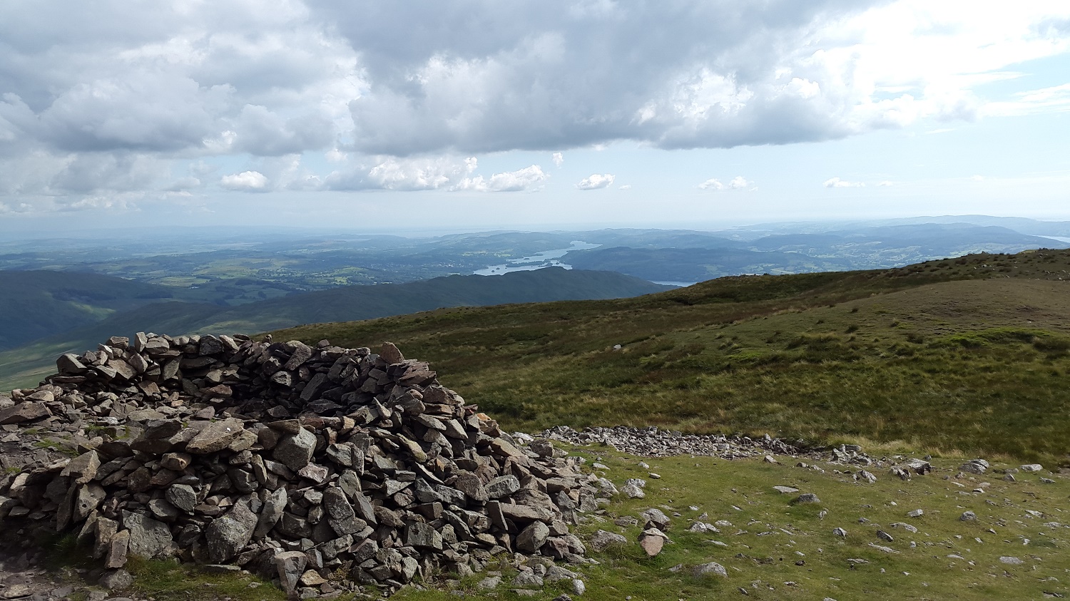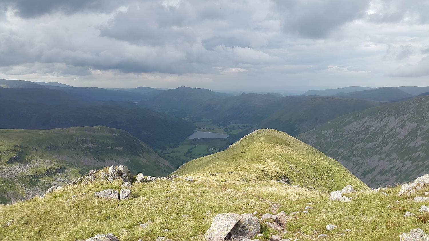 Middle Dodd summit with Place Fell directly behind Brothers Water, the weather not as good to the north……