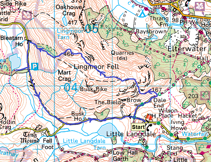 | Route – Dale End – Lingmoor Fell – Bleatarn House – Blea Tarn – Wrynose Pass |