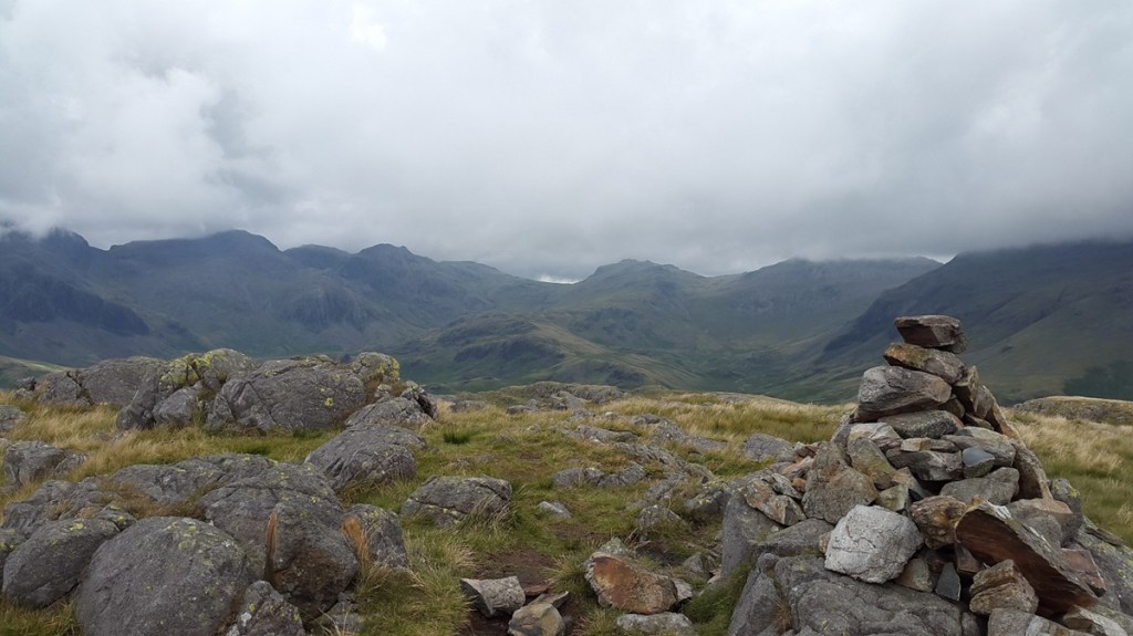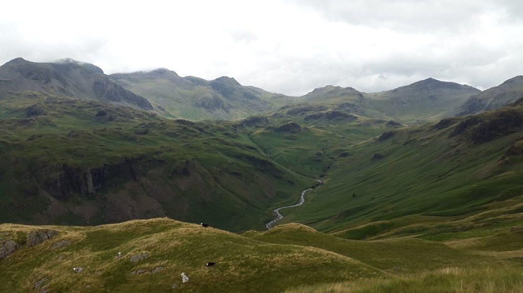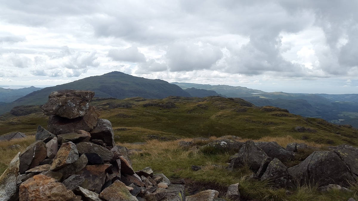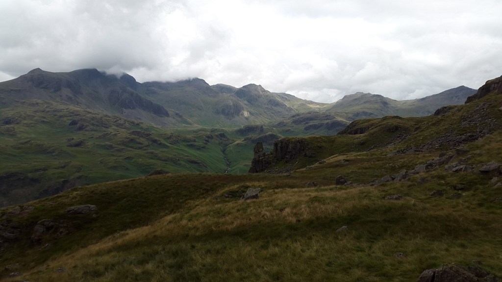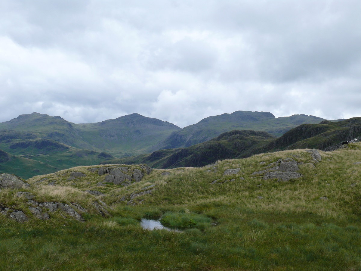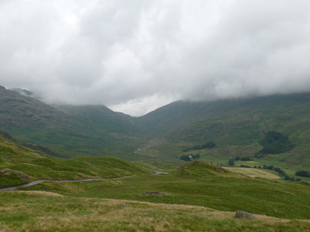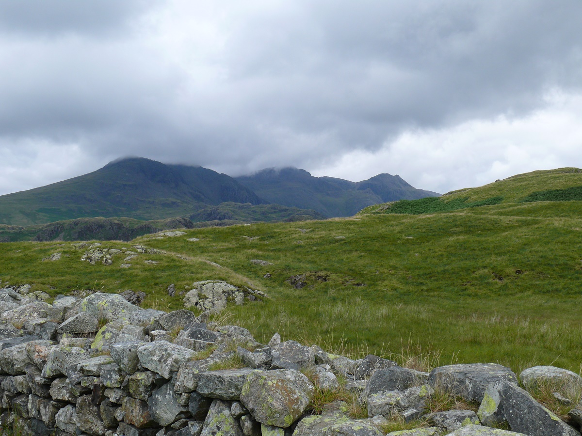 Fourth walk in the Lakes and a chance to catch a glimpse of the highest points in England, The Scafells, as well as look at the fantastic Eskdale. It also meant a trip across one of the toughest driving roads in the land, with first the Wrynose Pass and then the Hardknott Pass to be crossed. Once parked up I had a visit to the old Roman fort at Hard Knott before then ascending the fell of the same name and then heading around to Border End. Walking up from the Hardknott Fort meant a pathless climb as the main path starts from the parking spots at the top of Hardknott Pass. After the recent overnight rain it was also fairly boggy. Still its better than being in the office!!