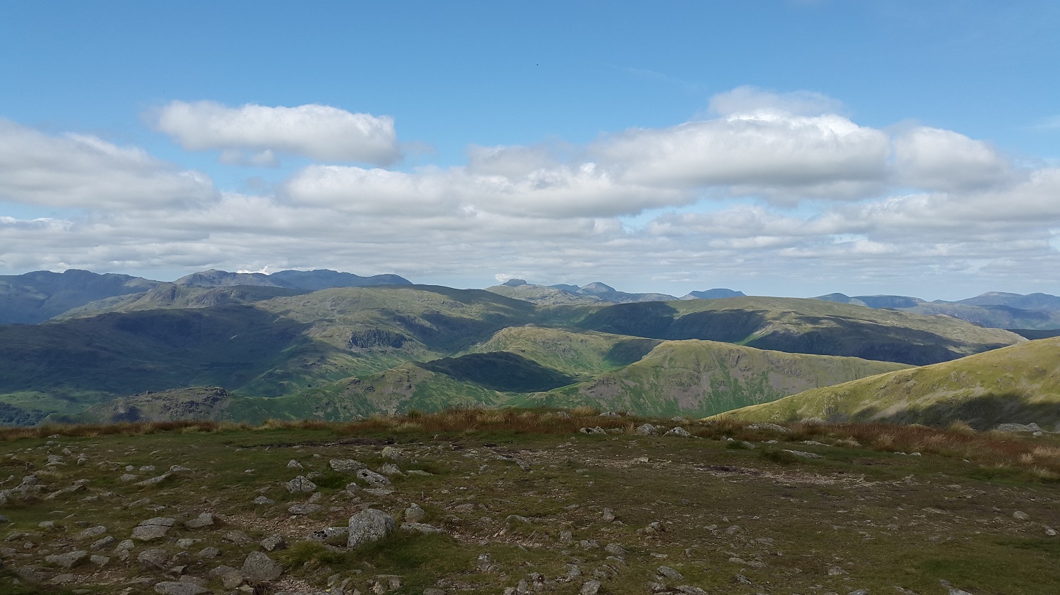 And better views west (left to right in the distance) Crinkle Crags, Bowfell, The Scafells and Great End, Great Gable (in the sun), Pillar, High Stile ridge and Grasmoor, plus many more in the foreground!!