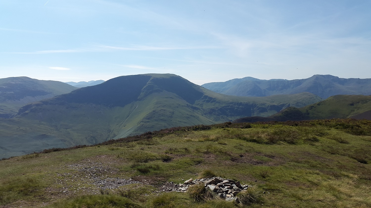 The bulky looking Sail and down to Scar Crags and then Causey Pike, which is behind Ard Crags summit