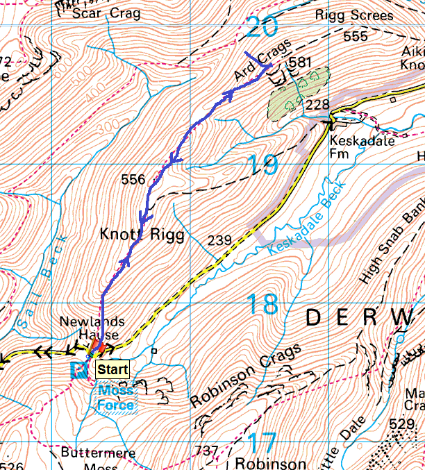 | Route – Knott Rigg – Ard Crags – almost Sail Beck – Ard Crags – Knott Rigg – Newlands Pass |