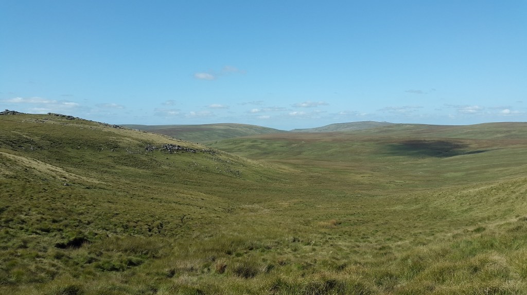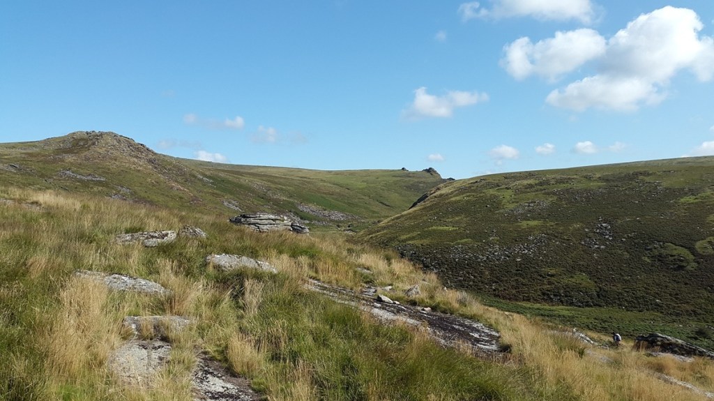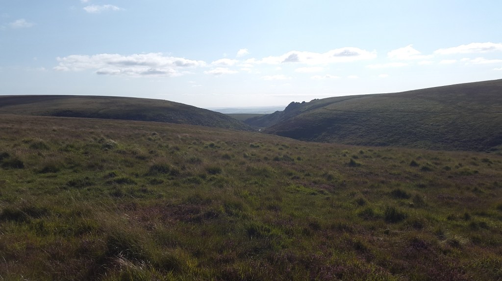 Out of the cleave now and walking across Watern Oke, that’s Fur Tor ahead