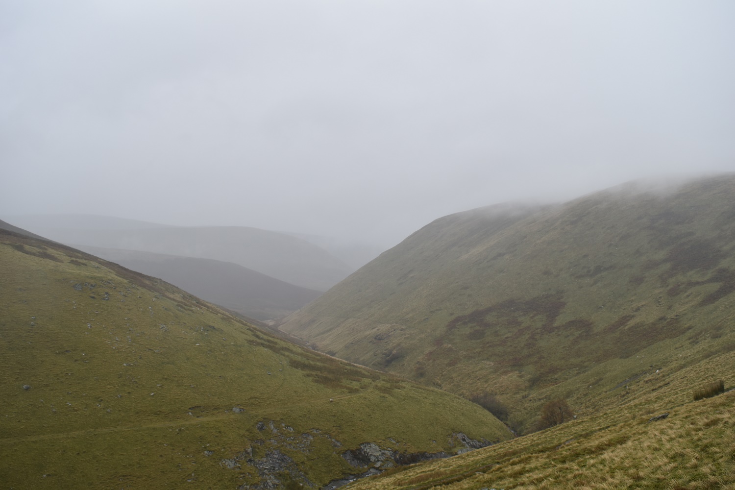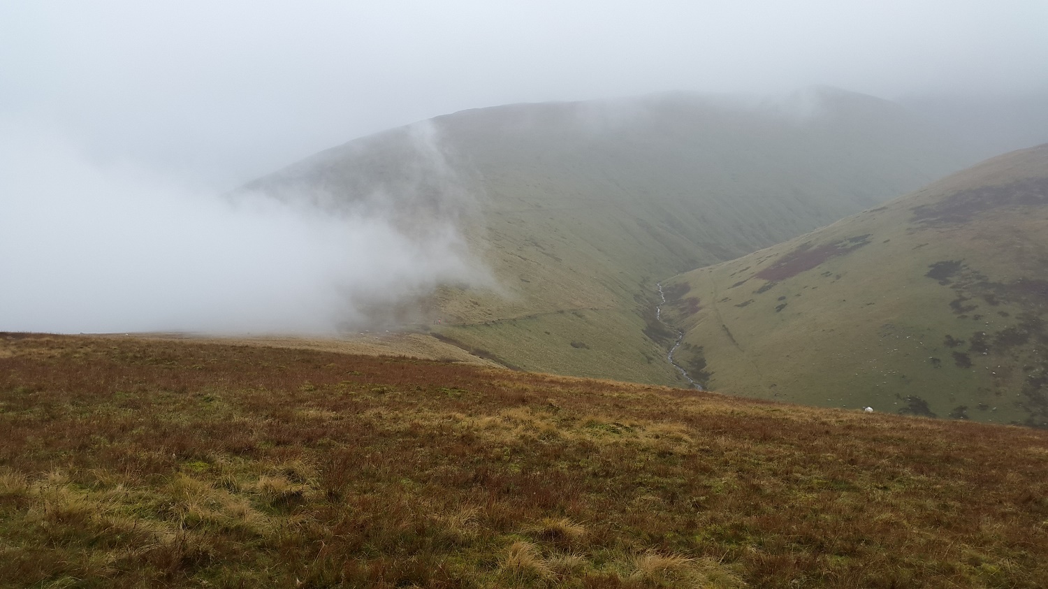 All of a sudden the cloud filled Mousthwaite Comb and spilled into Bannerdale below me