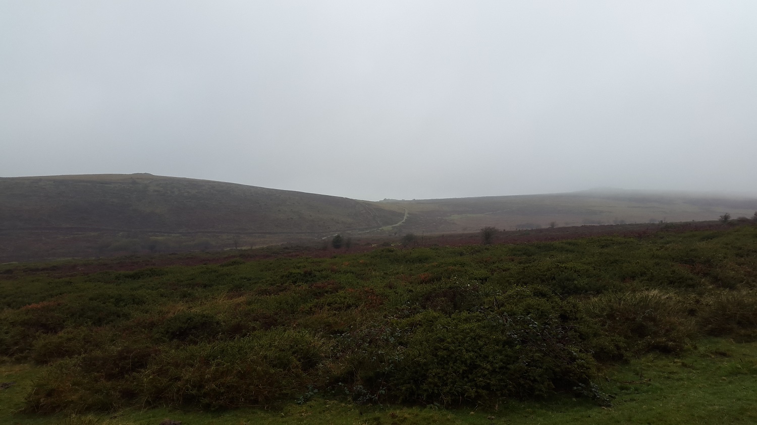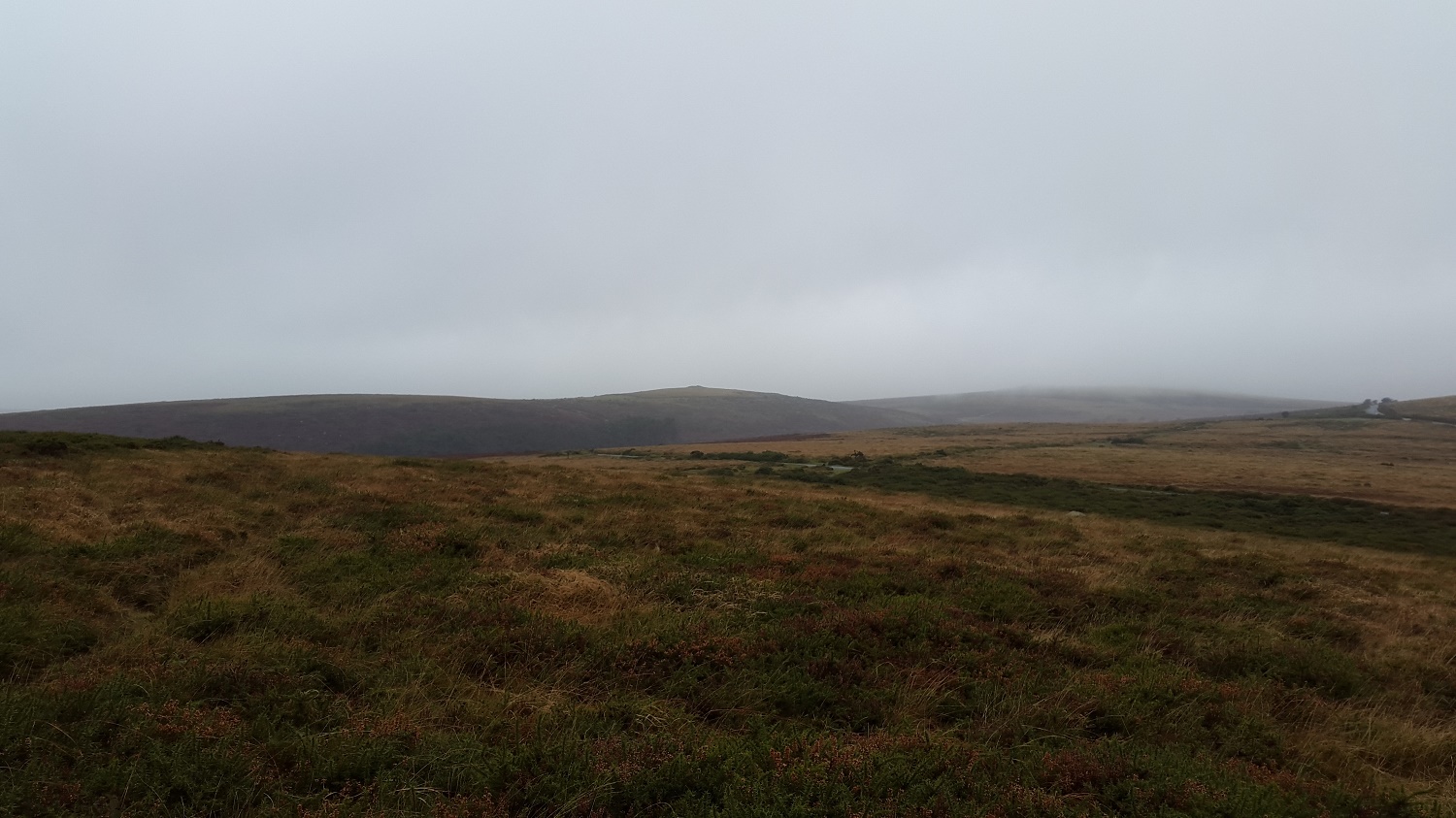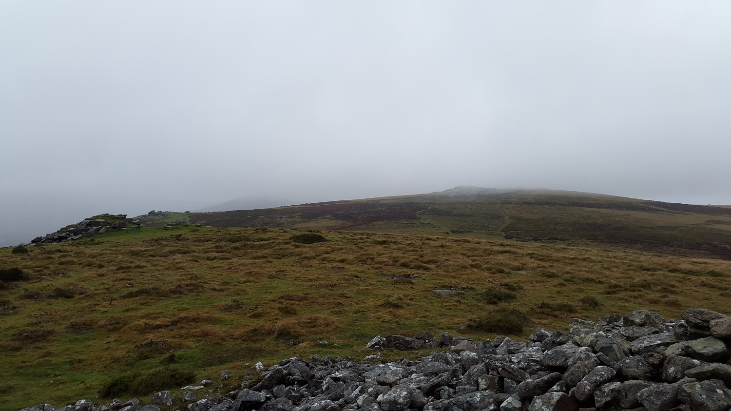 Wittaburrow in the centre with Pil Tor to the right (also in the clouds!)