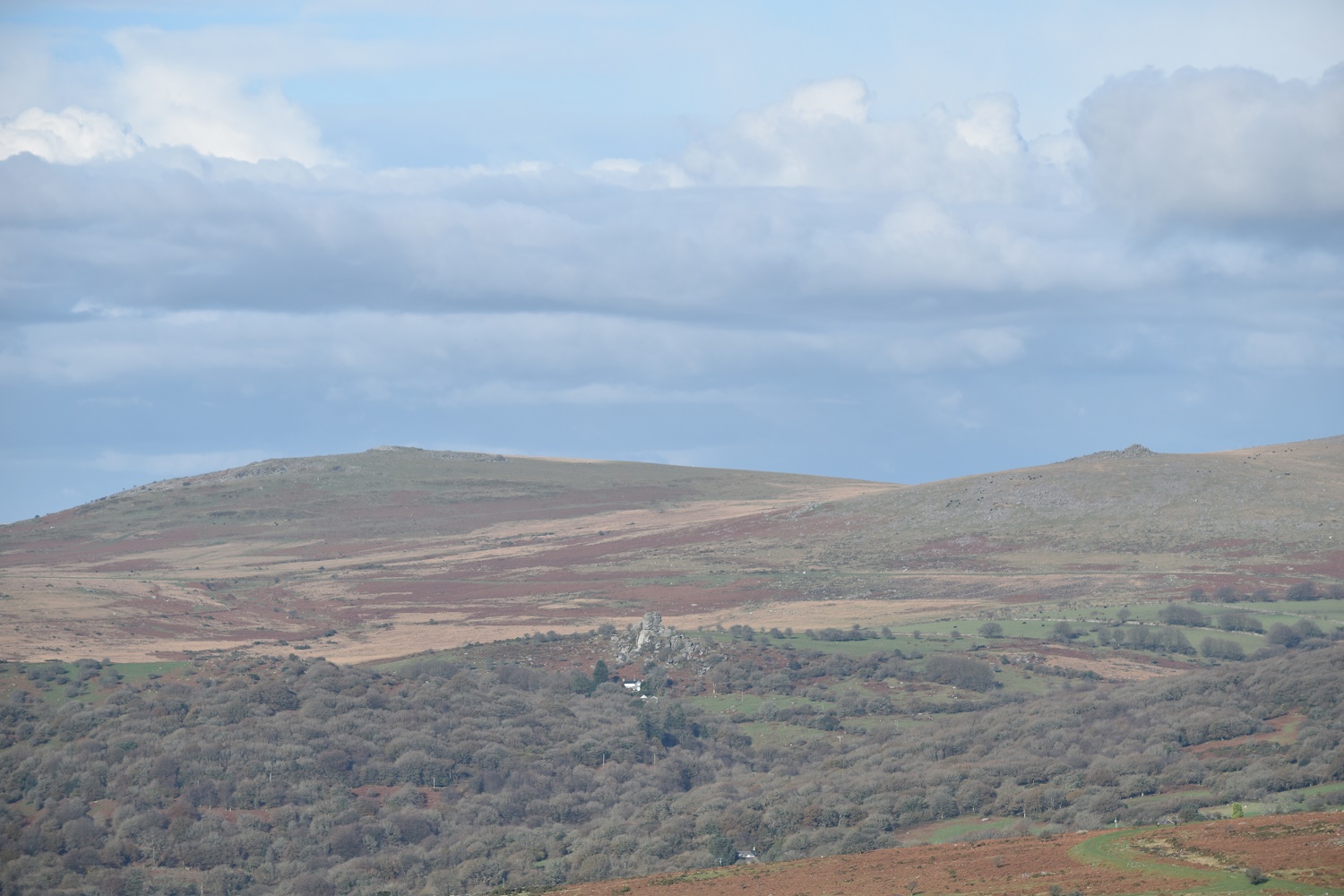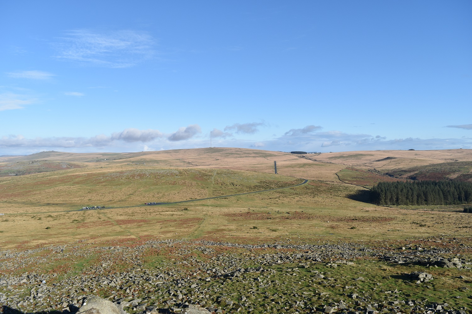 And again as he zooms back in on the car park with Cox Tor to the right and Brent Tor in the distance to the left