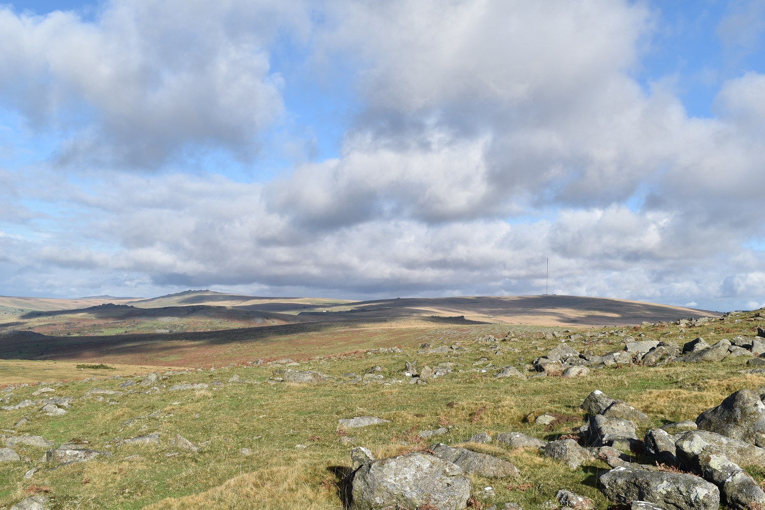 Start of the walk and blue skies and North Hessary Tor in fine fettle