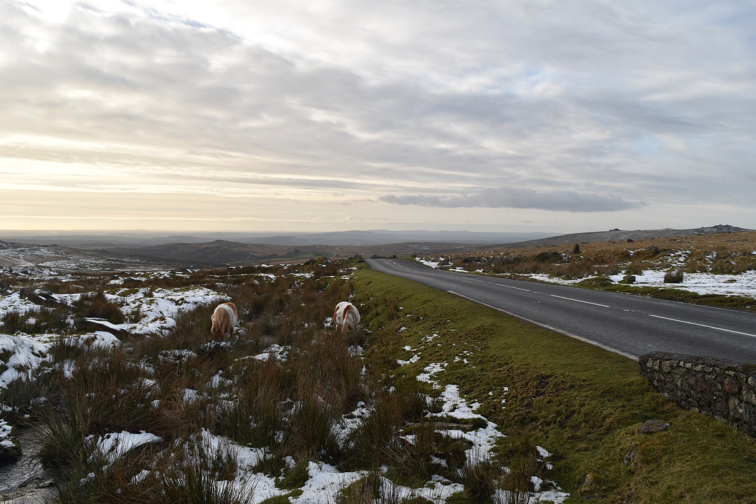 The B3357 which eventually leads to Tavistock, Cornwall in the distance