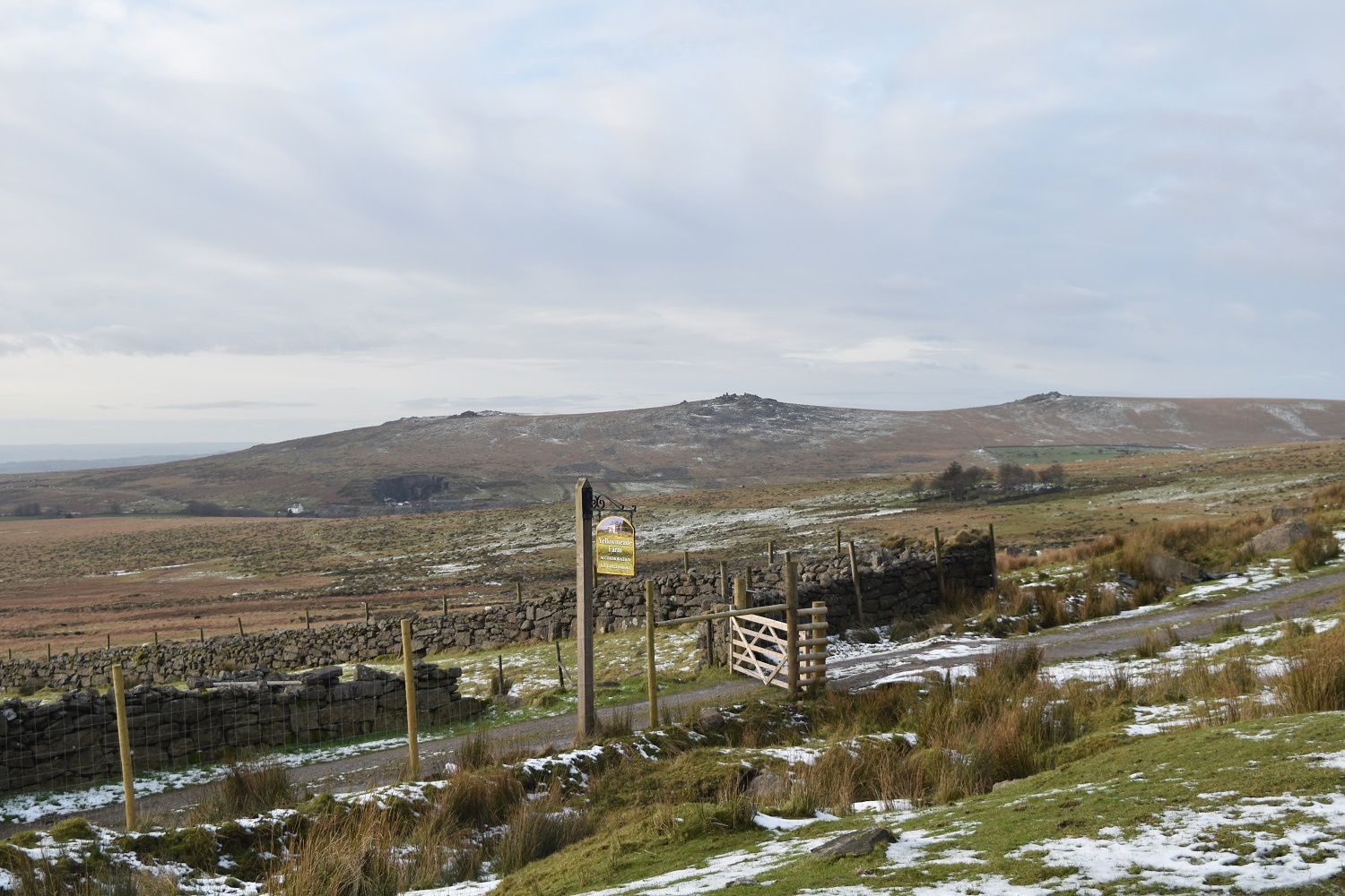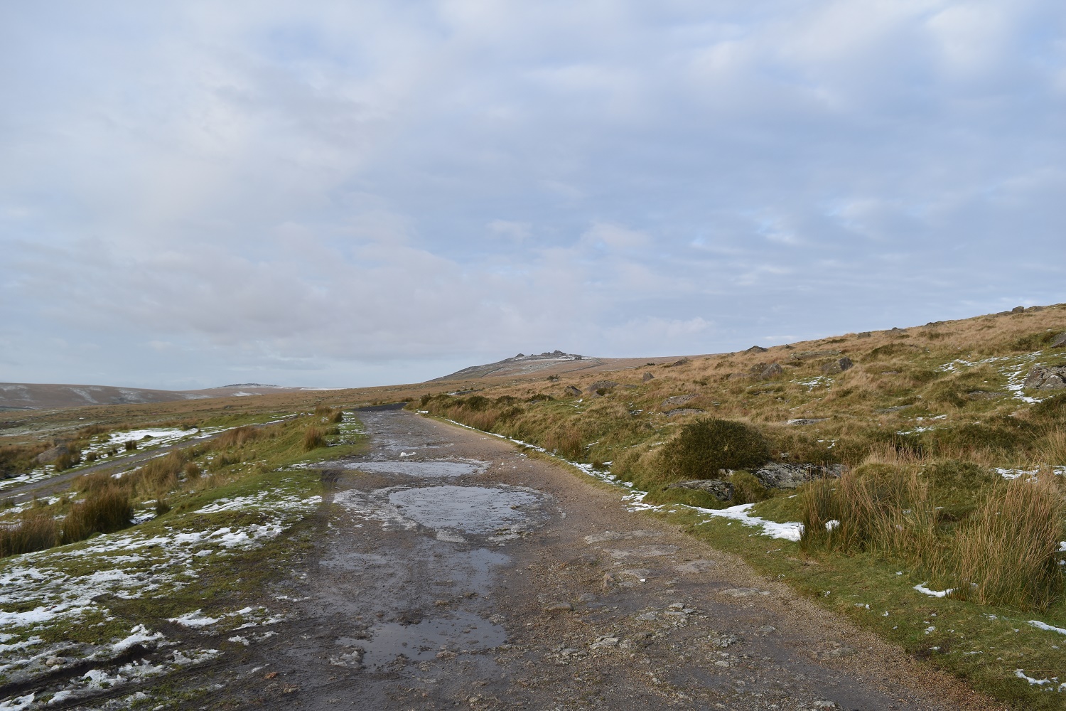 Yellowmeade Farm along the lane to the right in the foreground with Foggin Tor and its quarry behind which is via the left path.