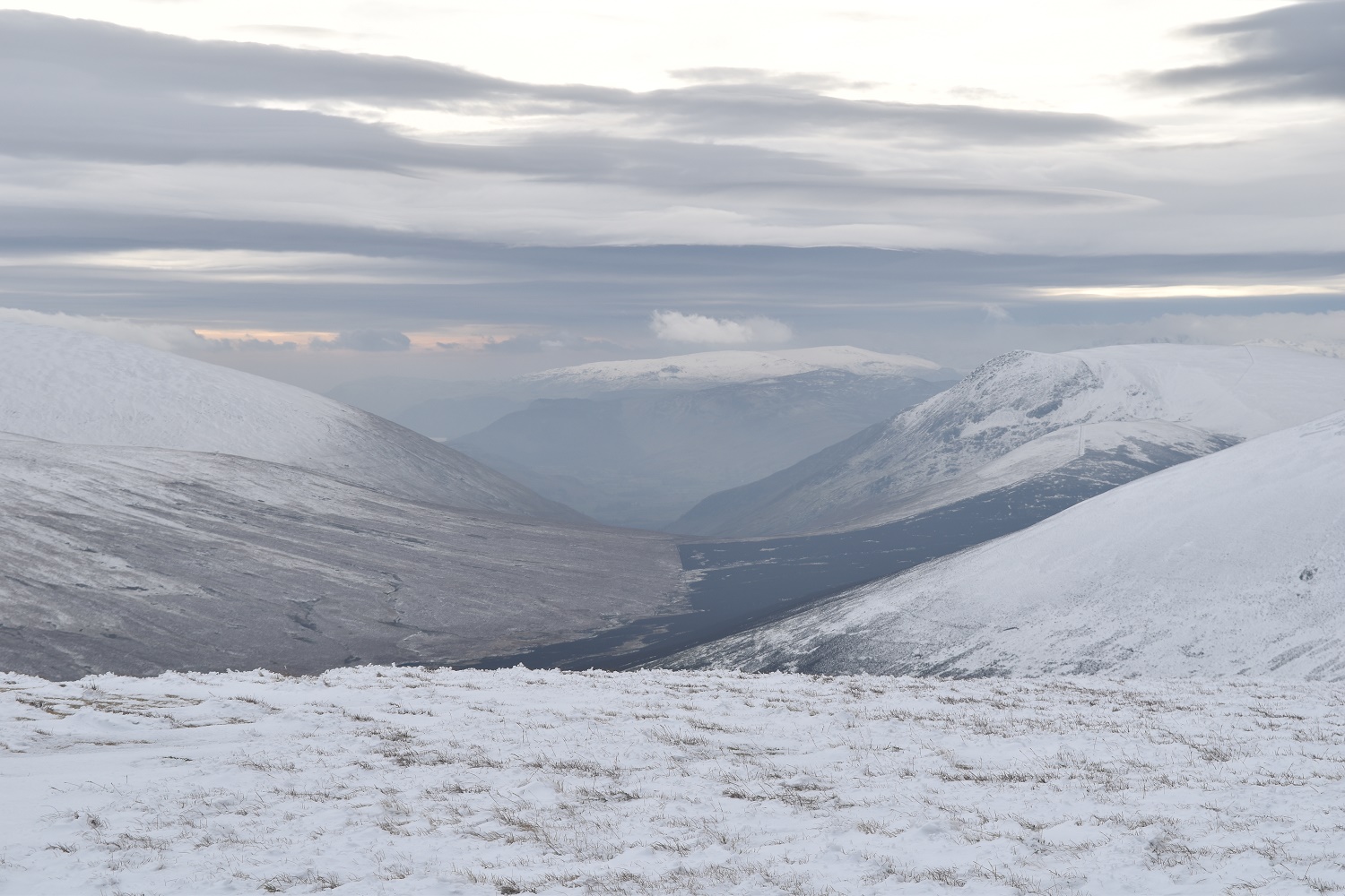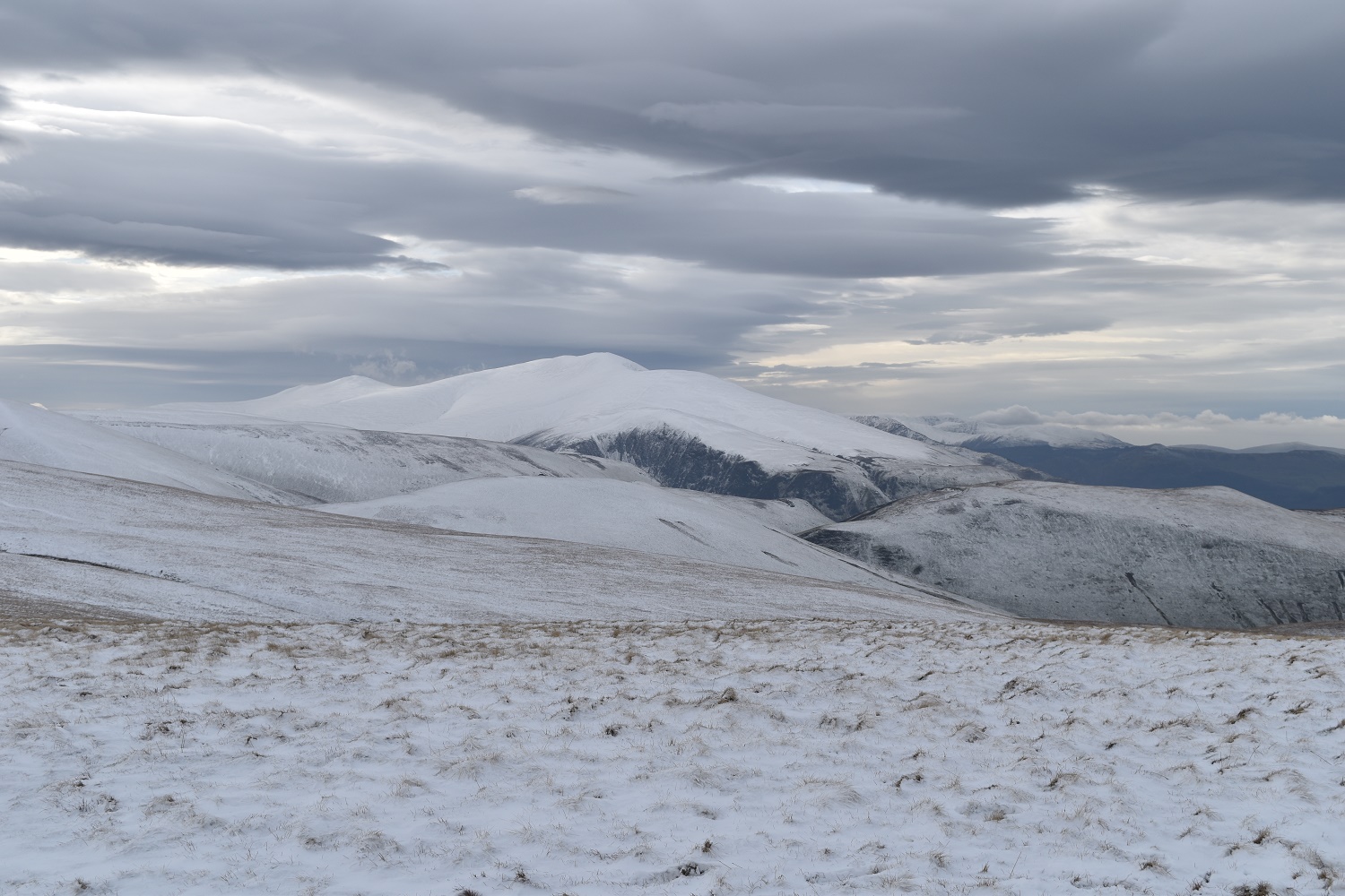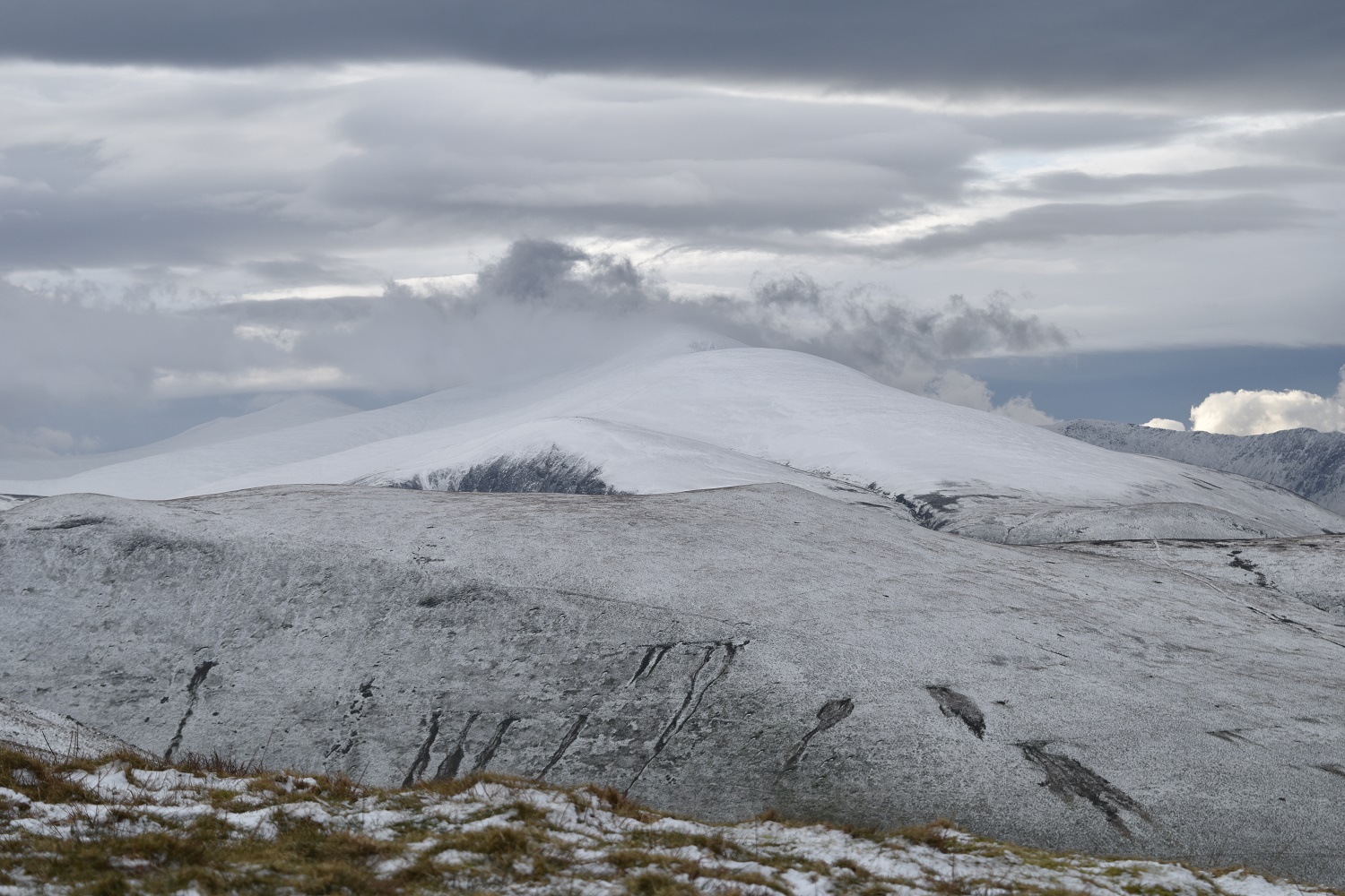 Whilst in the Lakes I really wanted to do a wintry walk. Something with snow, cold conditions and maybe a need for some microspikes. Nothing that difficult that requires an ice axe and crampons but enough to give me a flavour and some experience in these conditions. Dartmoor can be bleak however lots of snow is rare, however in the Lakes there is usually plenty. The fells behind Skiddaw remind me of Dartmoor and that made my mind up when deciding where to walk, I knew the hills wouldn’t be icy and not too steep, the grass underneath allows for easy walking without the need to don spikes (although I did take them just in case). The worst part was the wind, upwards of 40mph and the resultant snow spindrift, which was tough to walk into. Still it was a brilliant day and it gave me exactly what I wanted.