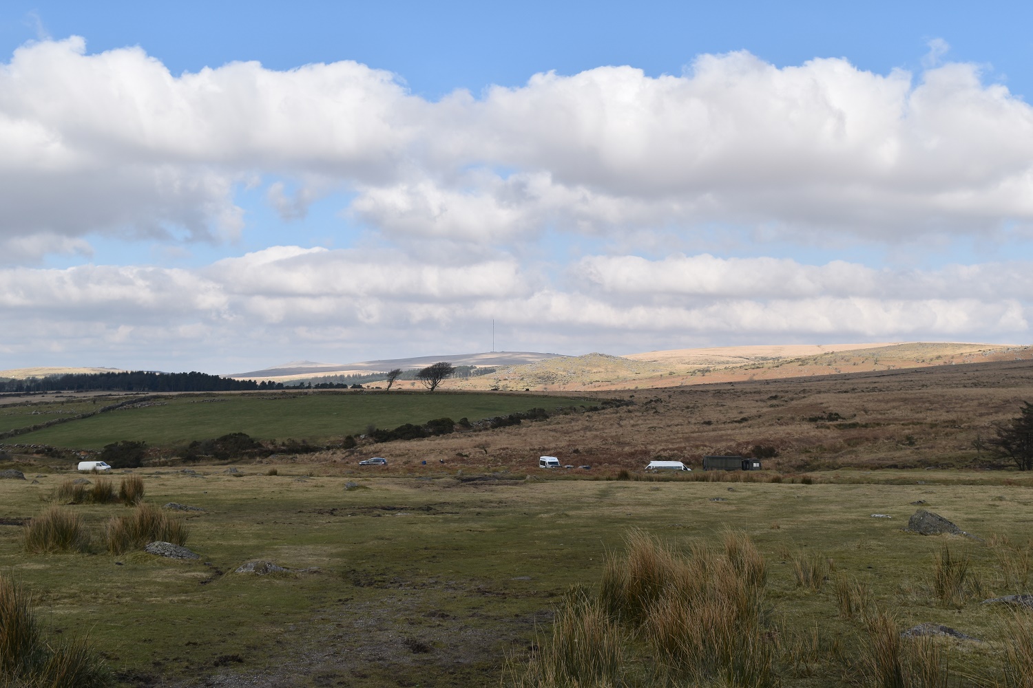 The scout hut is in the trees to the right, Leather Tor in the distance