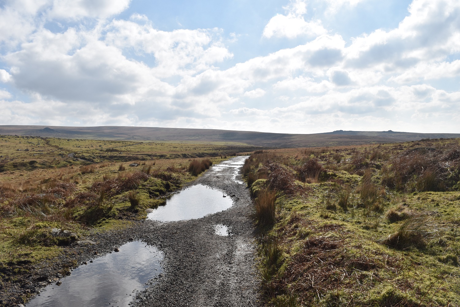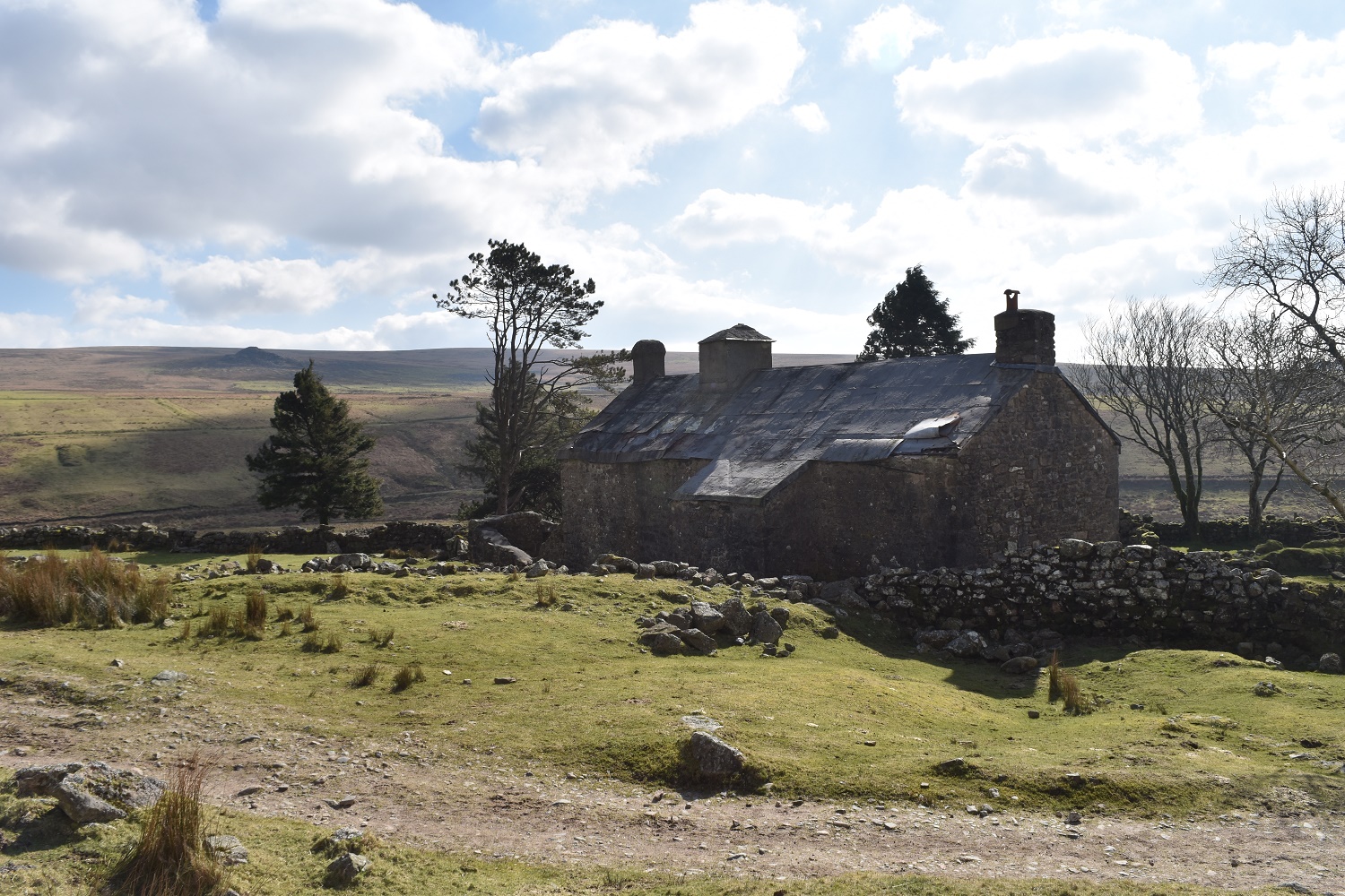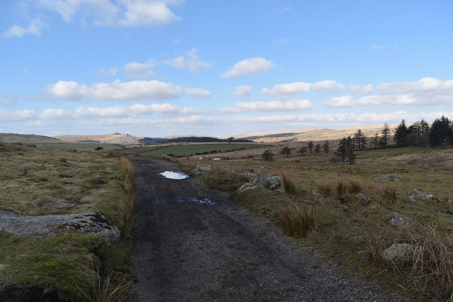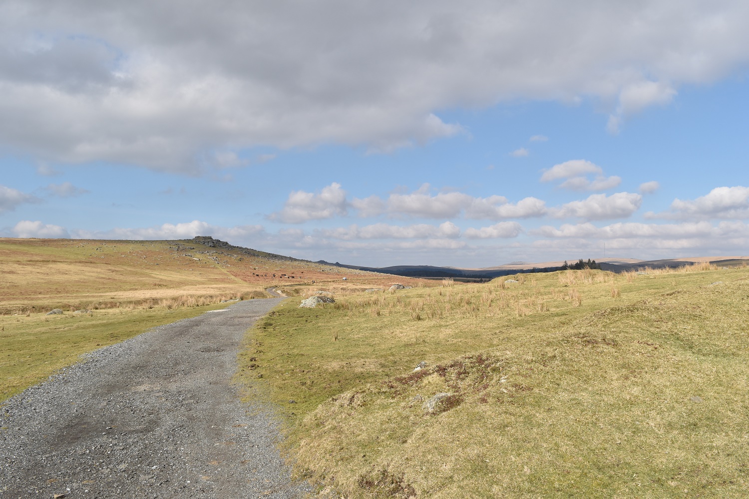 The path to the Ditsworthy Warren House with the Trowlesworthy Tors to the right