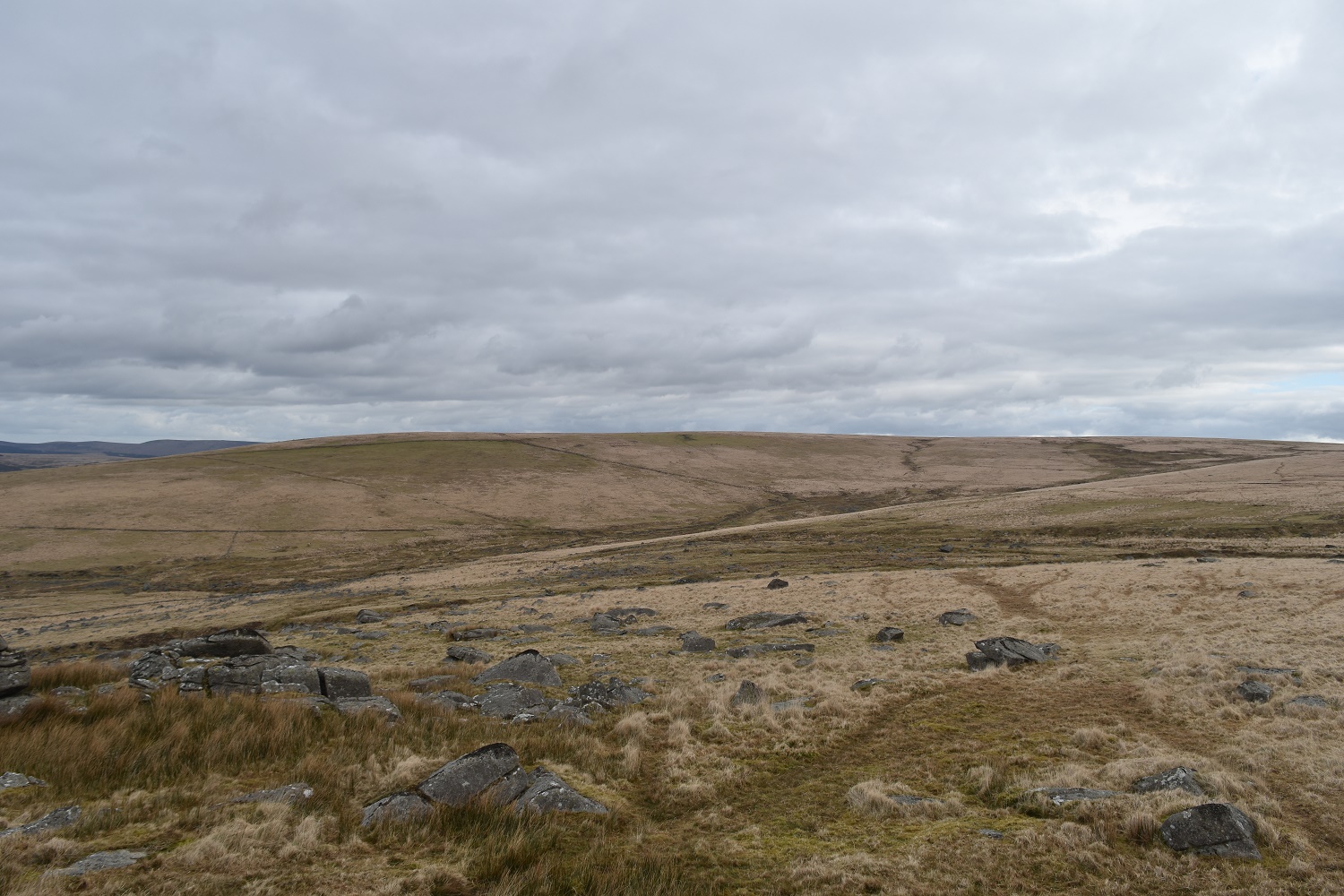 Part of my outward route with Fox Tor centre and Ter Hill to the left