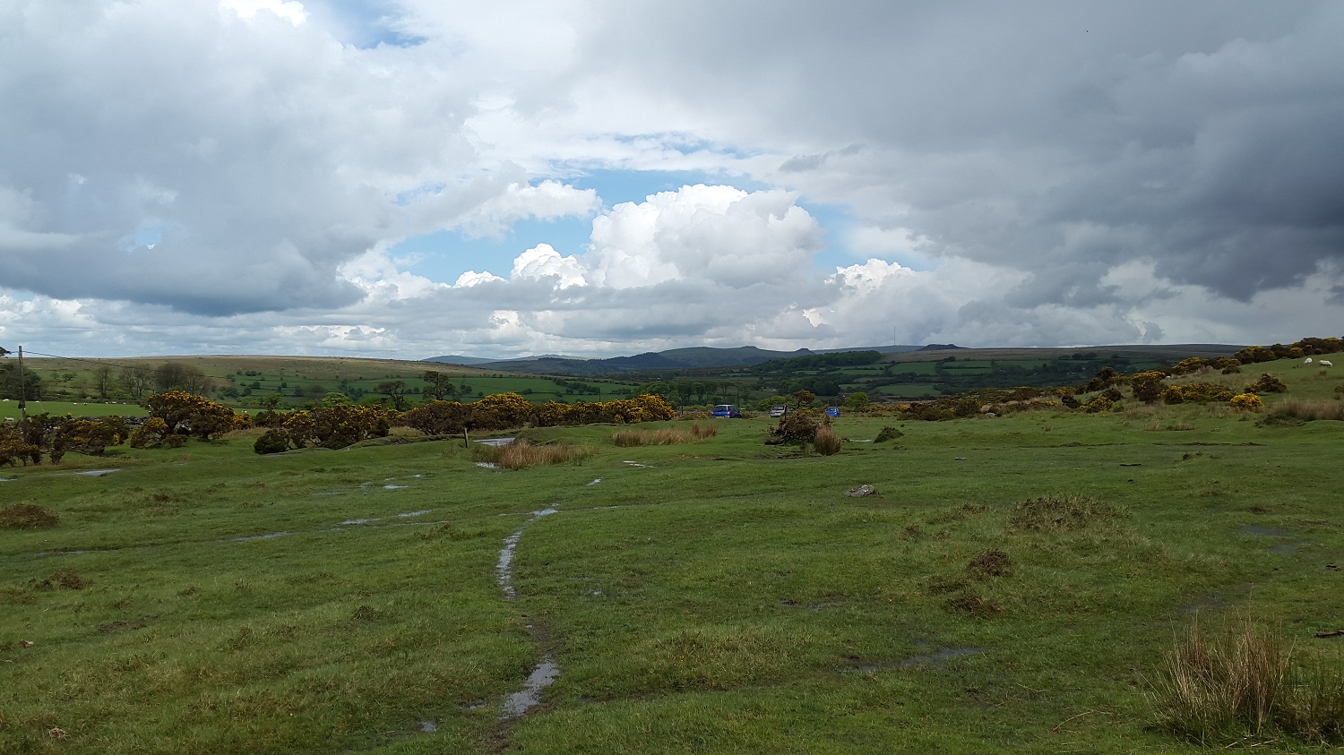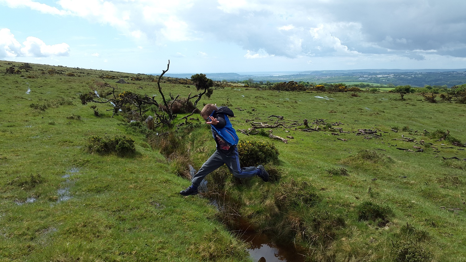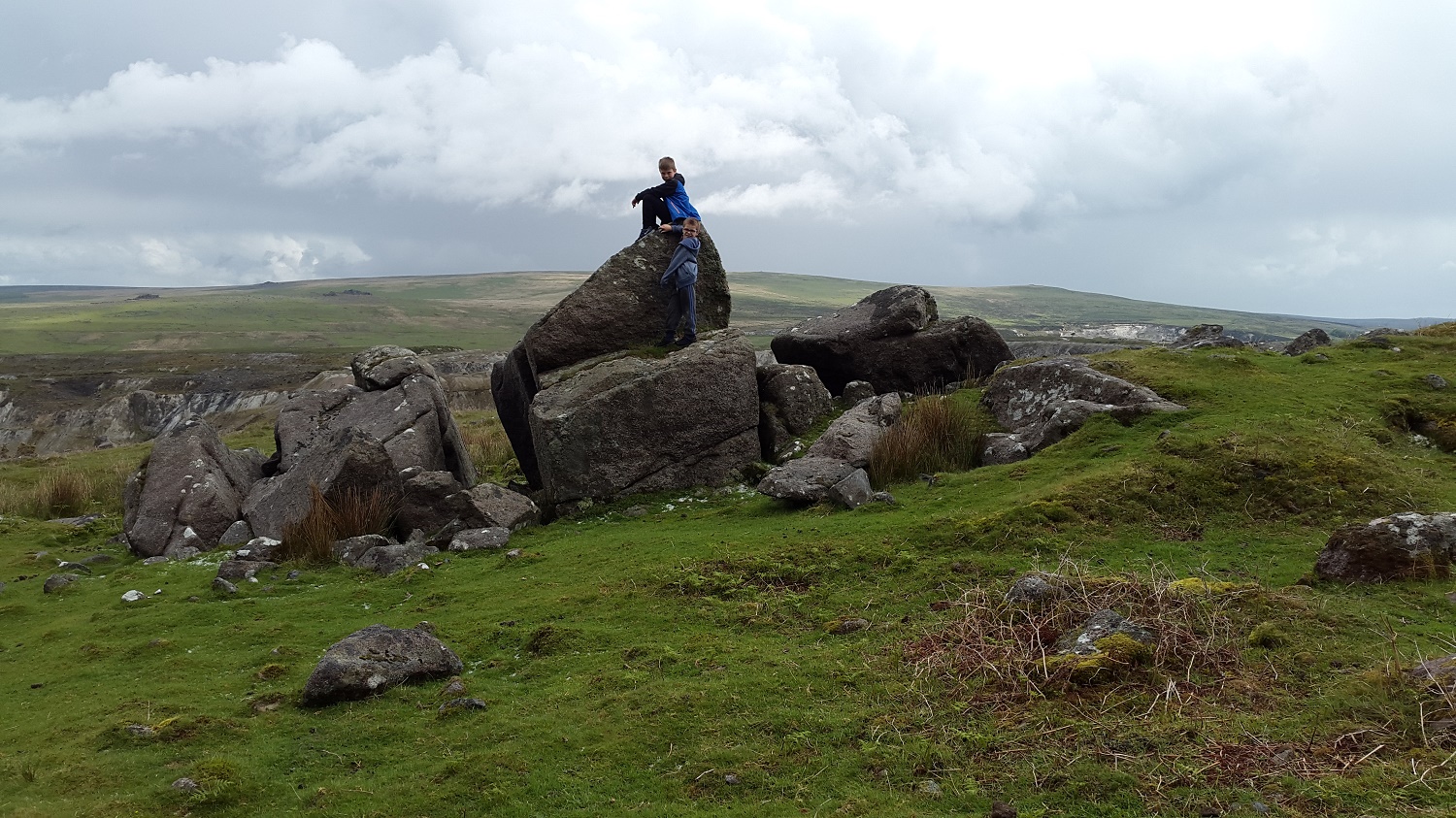 Whereas last Sunday we had beautiful weather on our walk above Burrator (here), this one was a bit of a washout. It started perfectly fine, with sunshine and the thoughts of a quick 30 minute ramble and some nice views. However the weather decided it couldn’t make its mind up and thought it would also throw in some hail and an almighty downpour for the fun of it!! The up part of the walk was all dry, but when turning round it was clear the rain was coming and thus on the descent we got soaked, even with a waterproof coat on! Saddlesborough is one of those infrequently visited places, a bit of a tick on a list if I’m honest. That said its a good one to get the kids out the house for an hour to run off some energy.