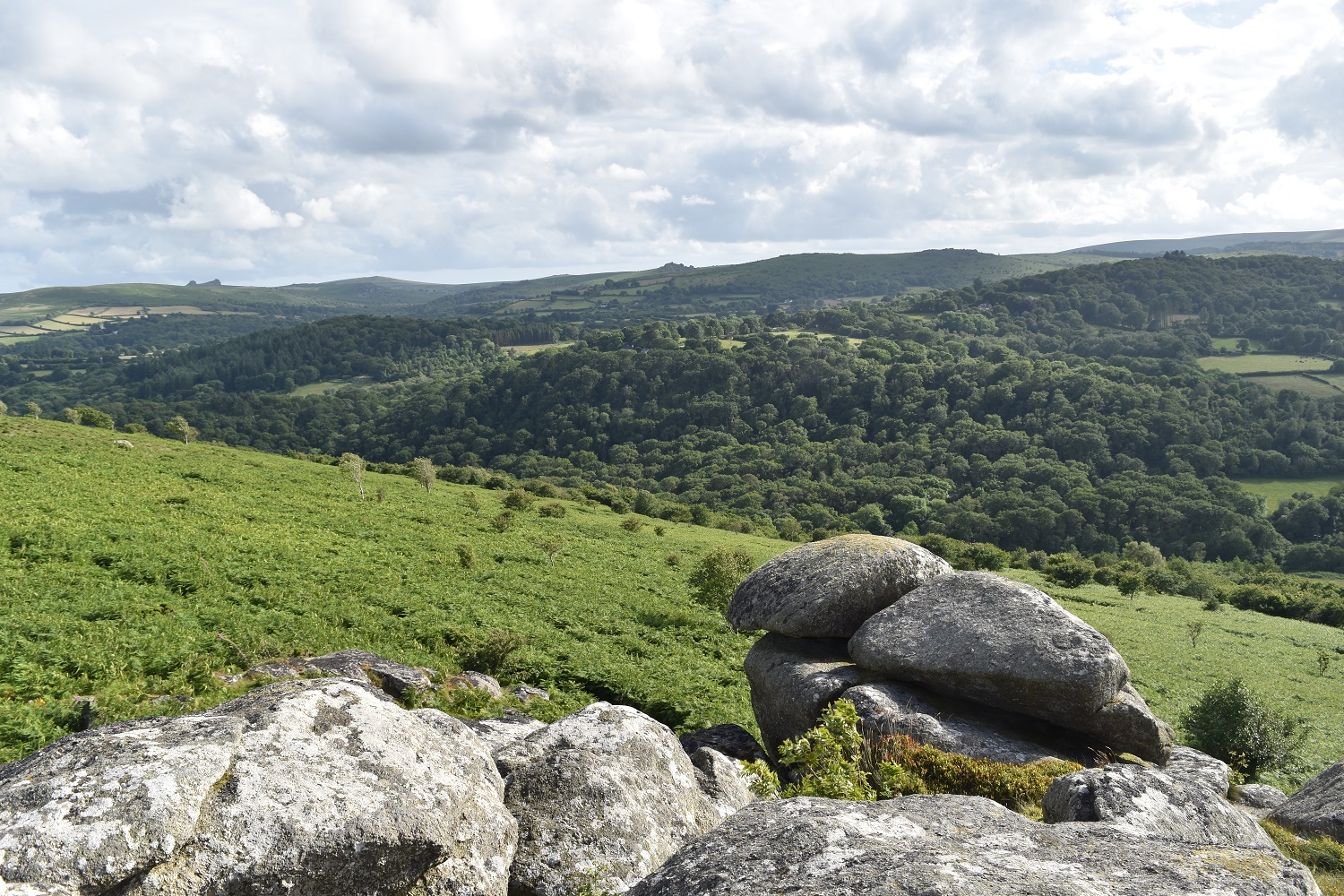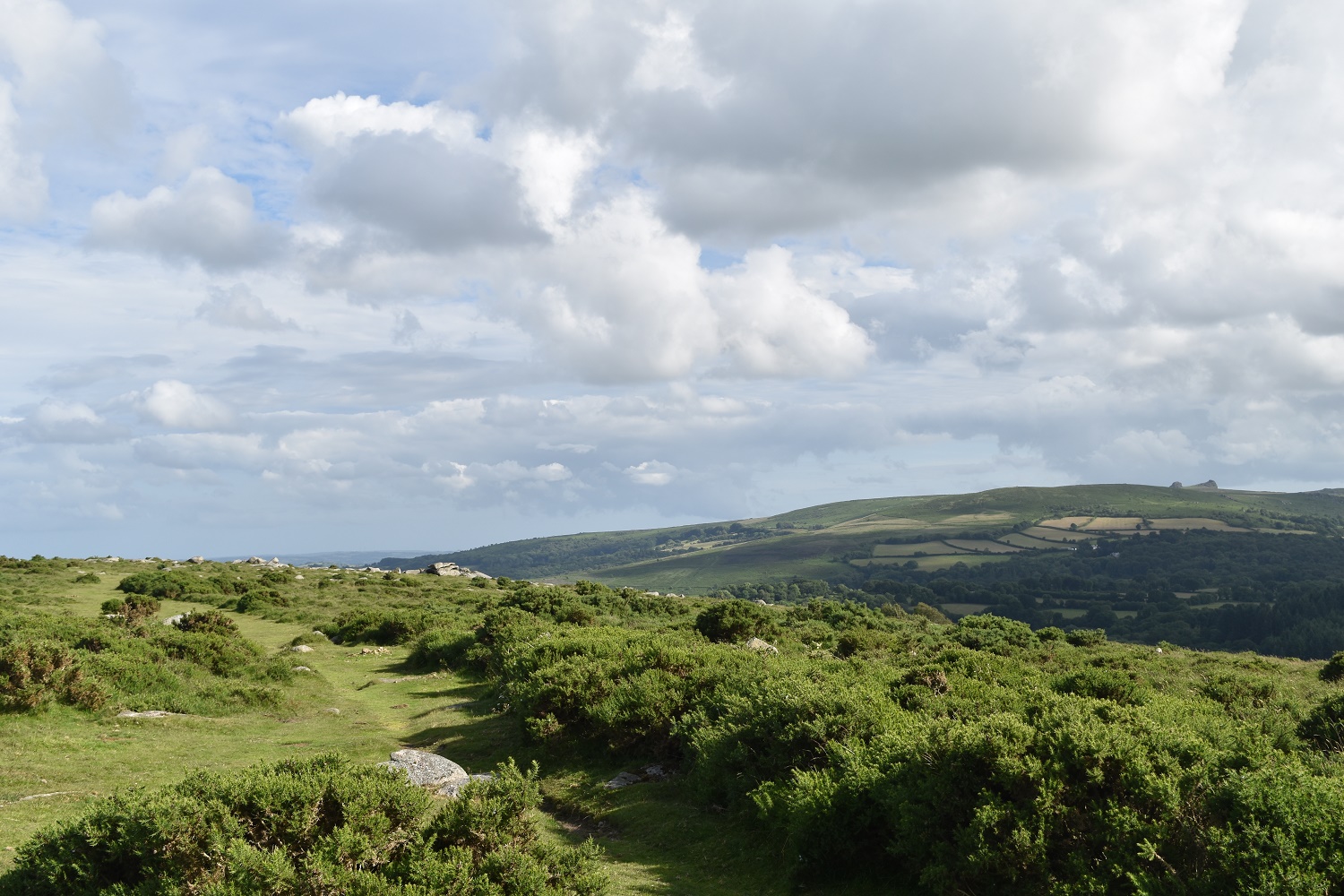 The top is in the trees to the left of this photo but the view as you pop up here captures all of your attention. Hound Tor in the distance