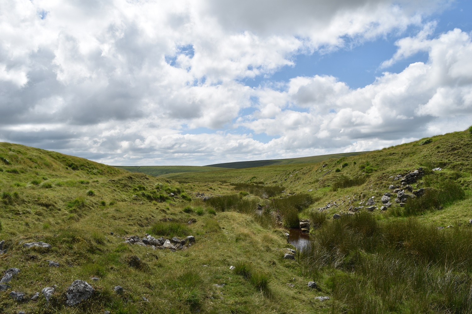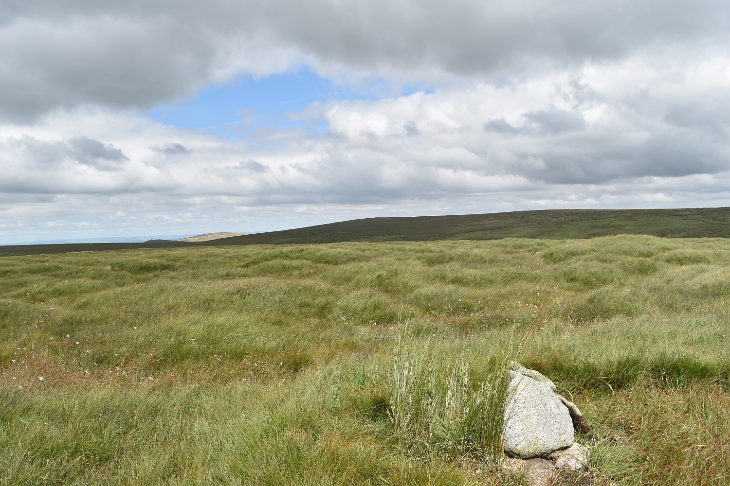 Classic terrain in these parts, boggy, long grass and the occasional peat hag. I’ve just crossed the Black Ridge peat pass and Black Hill is the raised ground to the left