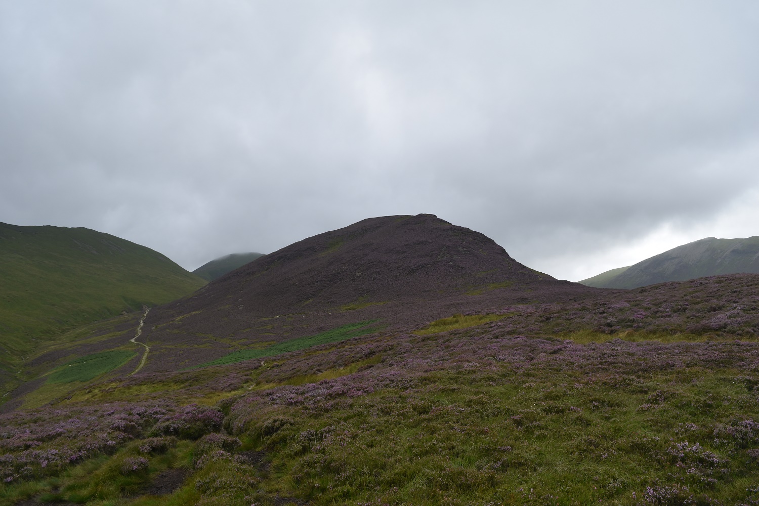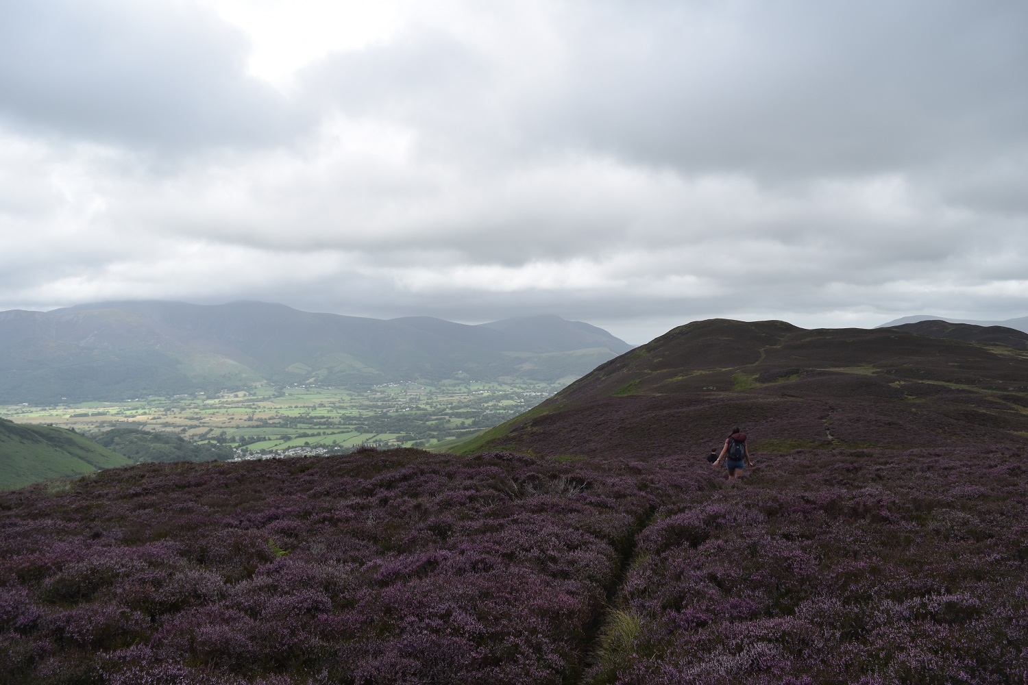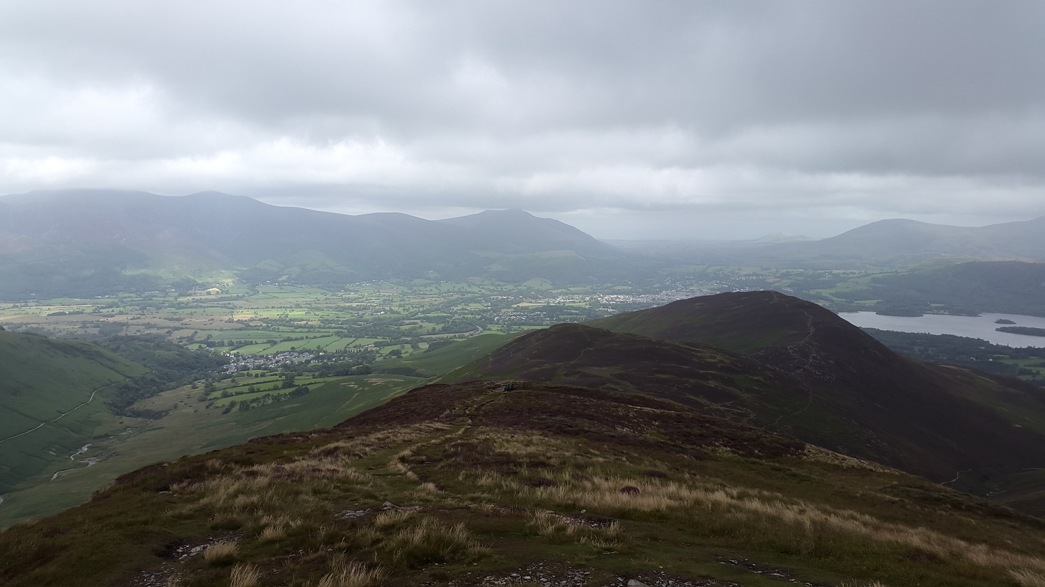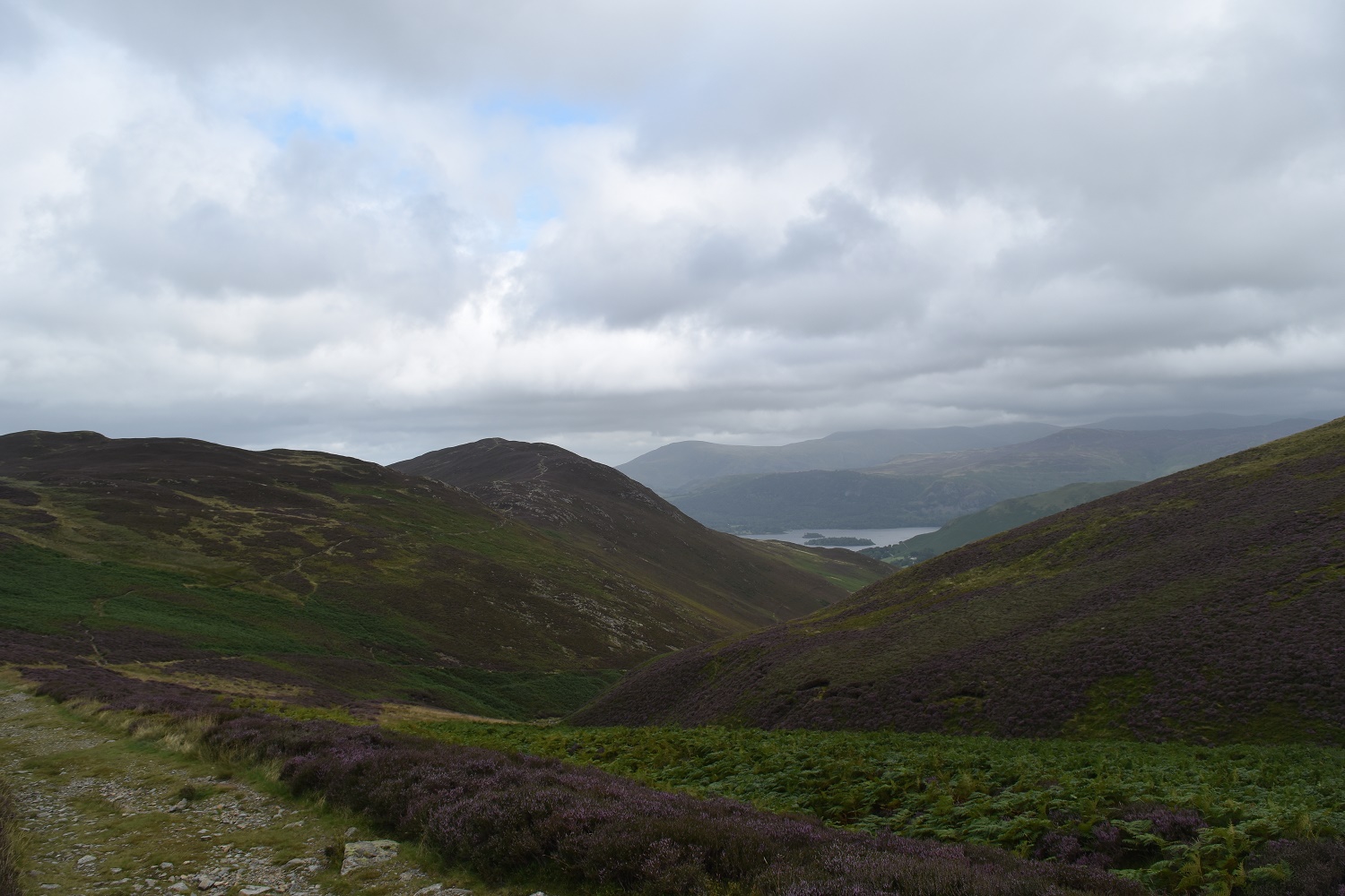 The ever present view back to Skiddaw (top just in cloud). Blencathra far right and the path we’ve walked clear to be seen