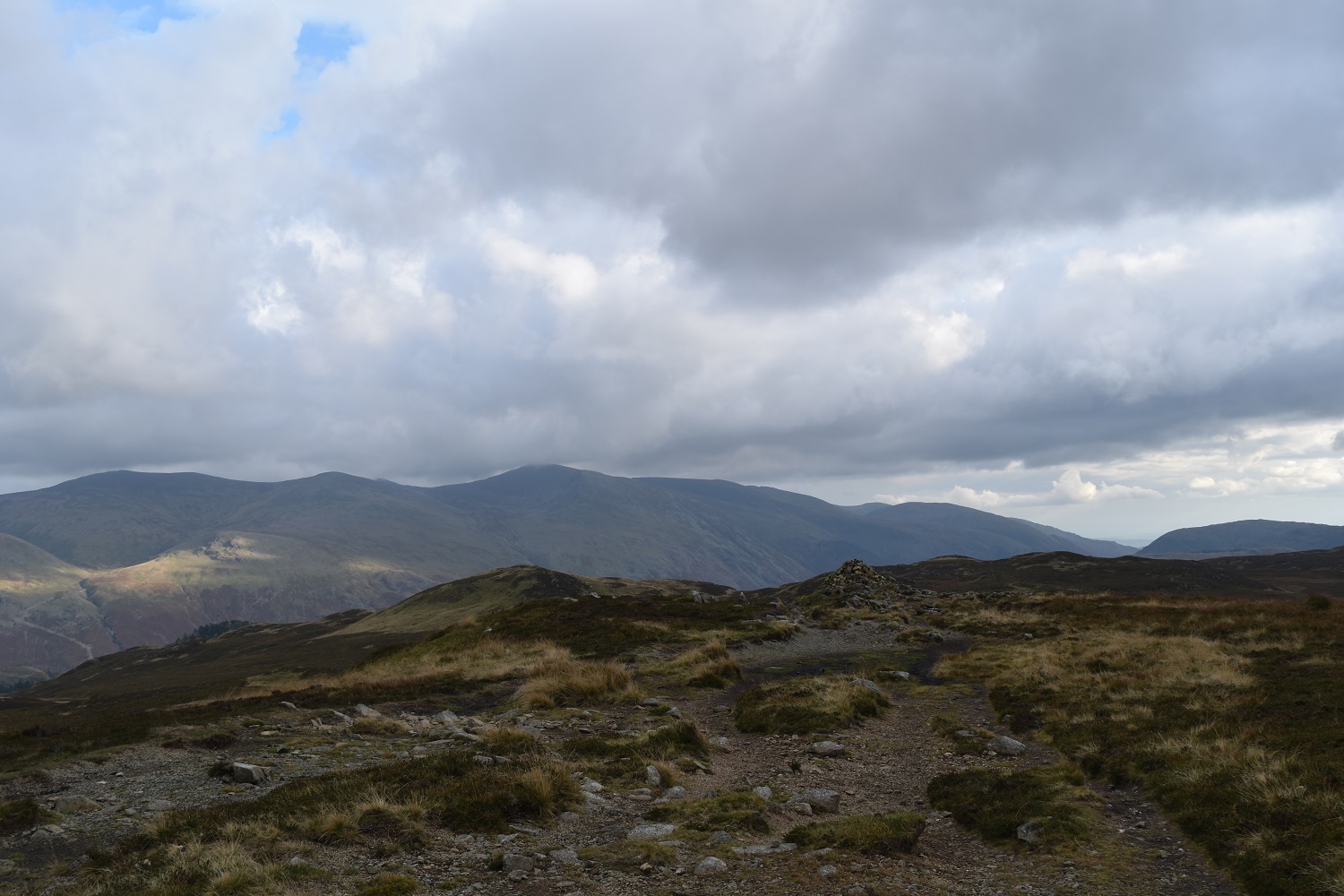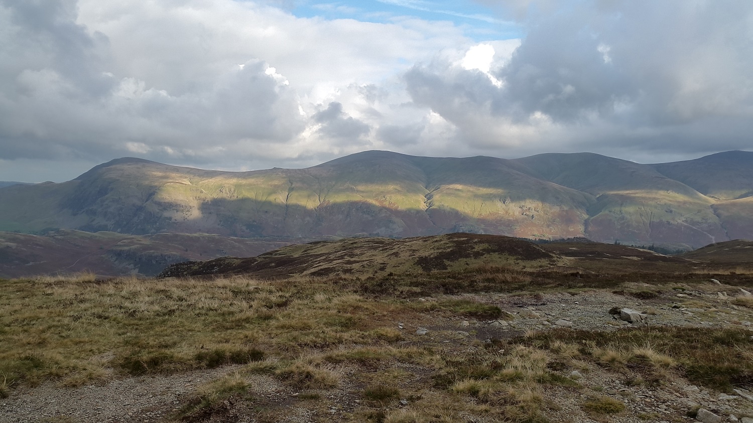 A strip of sunlight across Clough Head and Great Dodd