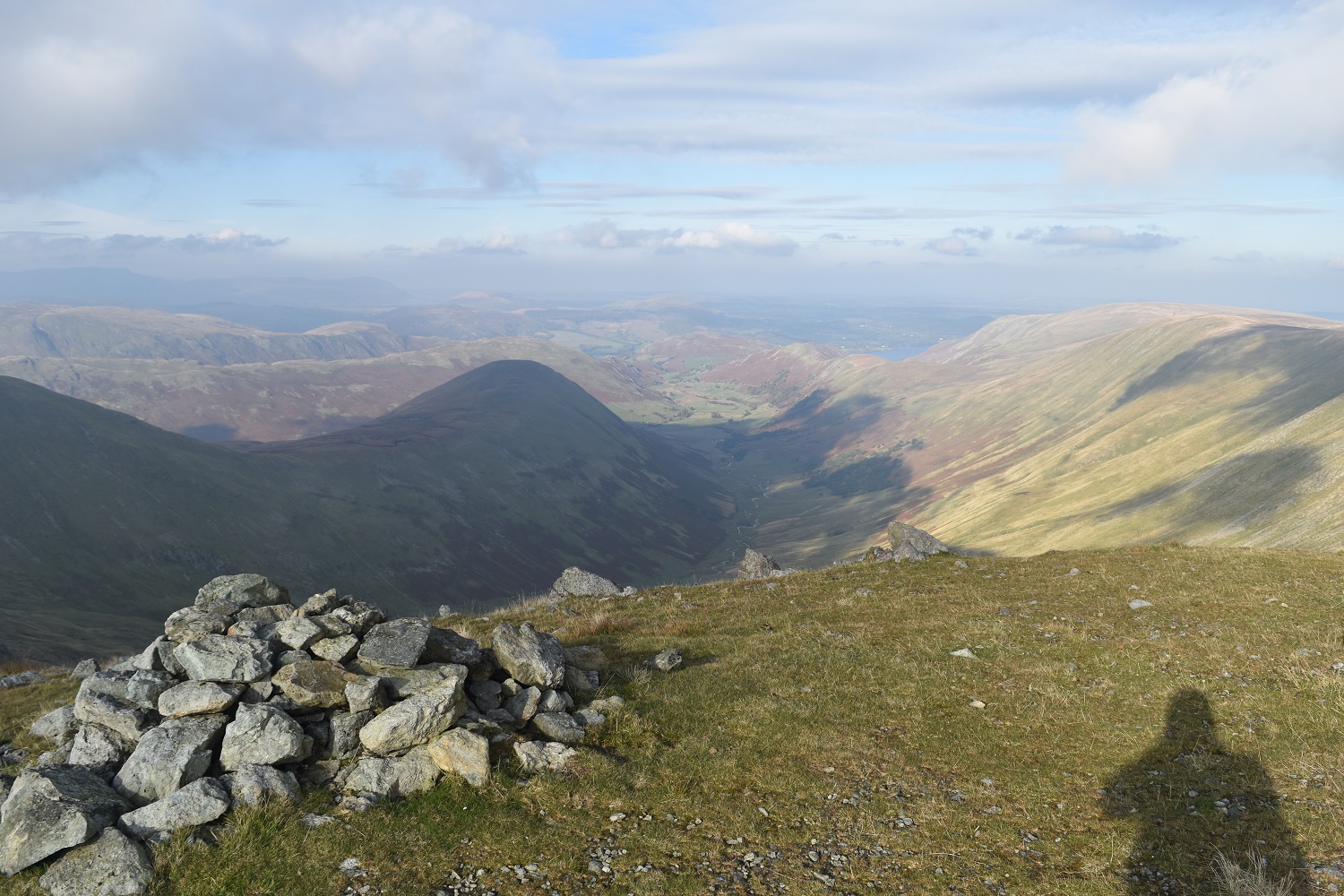 The air clarity was superb here on Brock Crags summit. St Sunday Crag is middle left with the pointy Catstycam further right