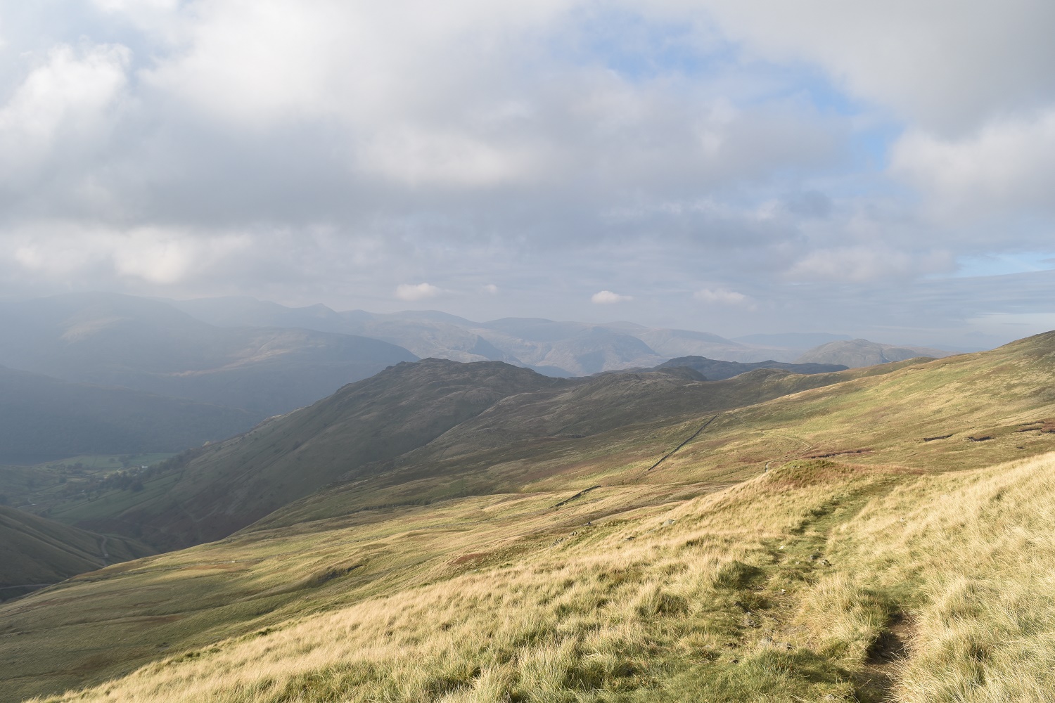 This was to be my big walk of the week and it didn’t disappoint. I’d neglected the Far Eastern Wainwrights during the 80 odd I’d done so far and decided this holiday to put that right. I’d fashioned two walks of 5 and 7 fells each, one that took in Steel Fell, Wether Hill, Loadpot Hill, Arthurs Pike and Bonscale Pike, with another that went around Brock Crags, The Nab, Rest Dodd, Rampsgill Head, High Raise, Kidsty Pike and The Knott. I’d plumped for the latter walk however once on the fells, I realised I’d spent too long in bed this morning and too long taking photos of inversions on the way to Hartsop!! This meant that Kidsty Pike and High Raise will need to wait until I go up High Street, plus my legs weren’t quite ready for the steep ascents of Brock Crags and Rest Dodd and they then failed me when trying to get to Rampsgill Head, meaning lots of stops and snacks!! Still the weather was as good as I’ve had in the Lakes, the views were crisp and the noise of the deer rut an ever present sound throughout. The sight of a hundred deer running 100 metres from me across The Nab is one I’ll remember for a while. I’m heading back next year for sure.
