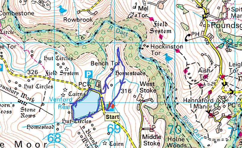 | Route – Venford Reservoir – North Tor – Bench Tor – Venford parking |