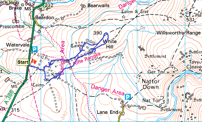 | Route – Willsworthy Firing Range – White Hill – Willsworthy Firing Range – Willsworthy Range parking |