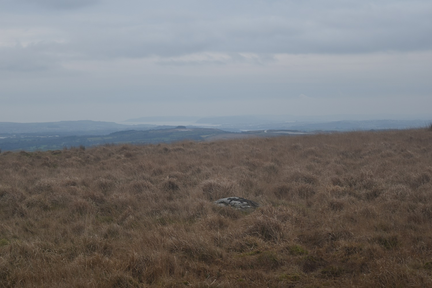 Plymouth Sound can be seen, even on this dull day, from up here