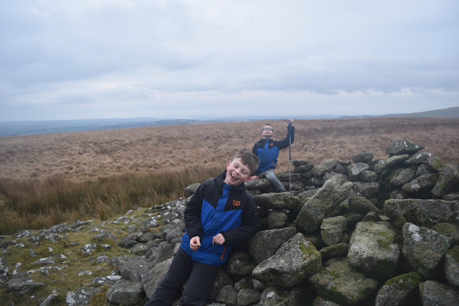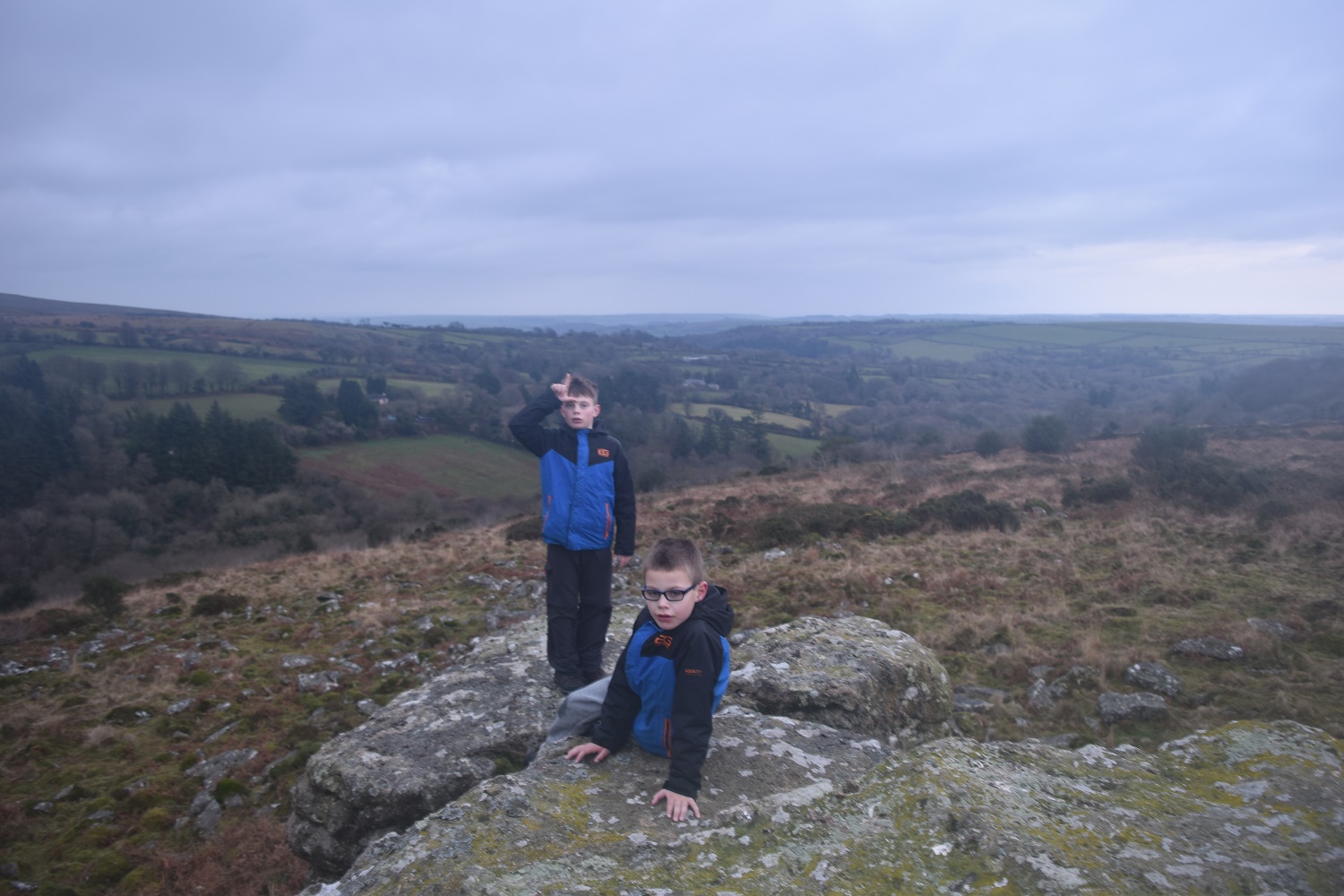 An afternoon walk with the boys to pick off a couple of tors in the south part of Dartmoor that I hadn’t done. I had hoped of having a good look at the two stone rows here, Staldon and Burford, however the daylight was fading fast on a grey day and the River Erme was difficult to cross dry shod!! I’ve never attempted to cross this River before, certainly not this low down and its not easy. I probably should have waded back and forth with the boys in my arms, but we went for an adventure instead, hopping from rock to rock, traversing a small island and then leaping for the bank!! They loved it, I was just glad we were safe and sound!!
