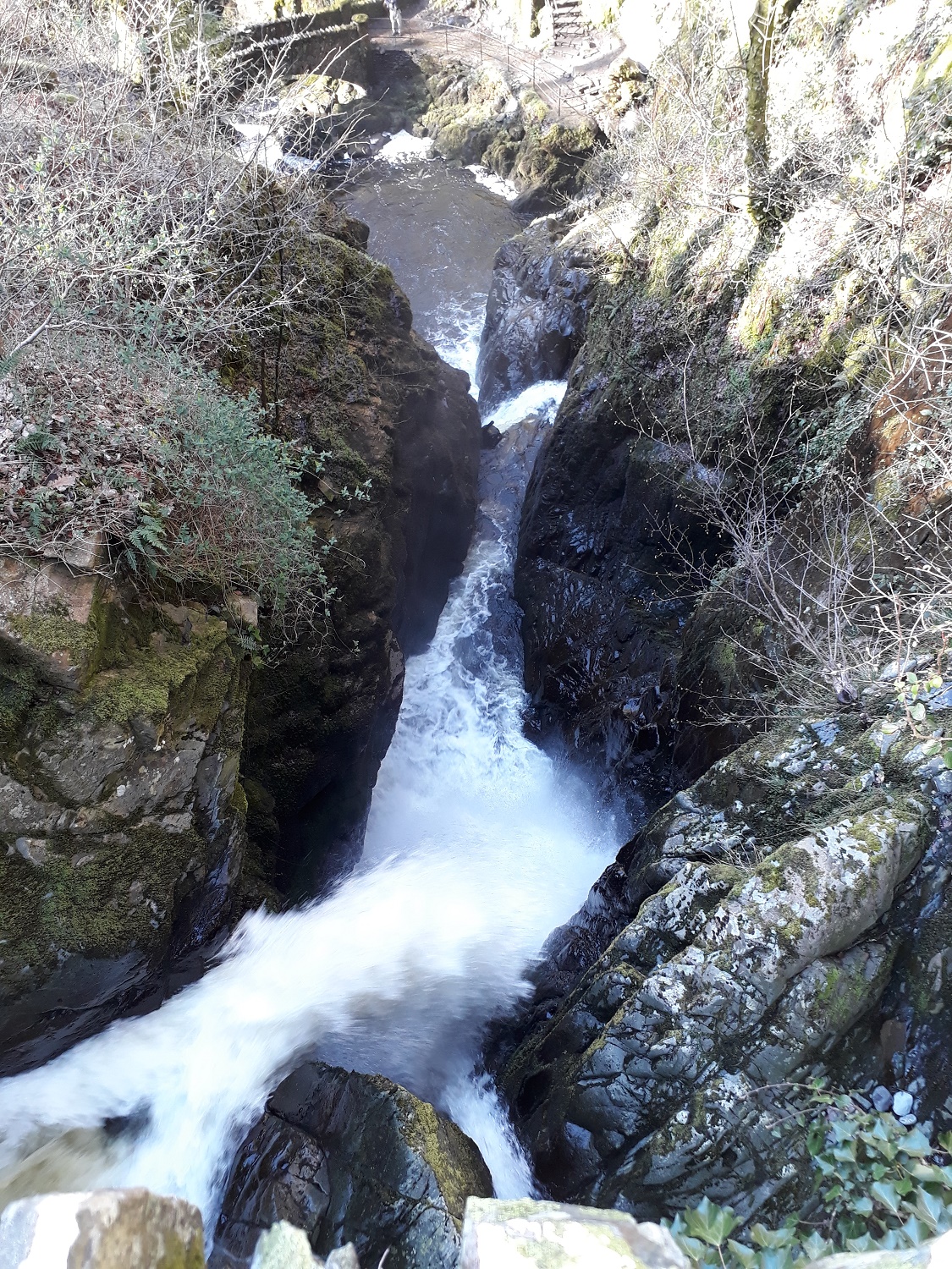 Looking down from the bridge above the falls, plenty of water and noise!!! At this point I decided to carry on up the path to High Force, before crossing the bridge above those waterfalls and heading back to Aira Force