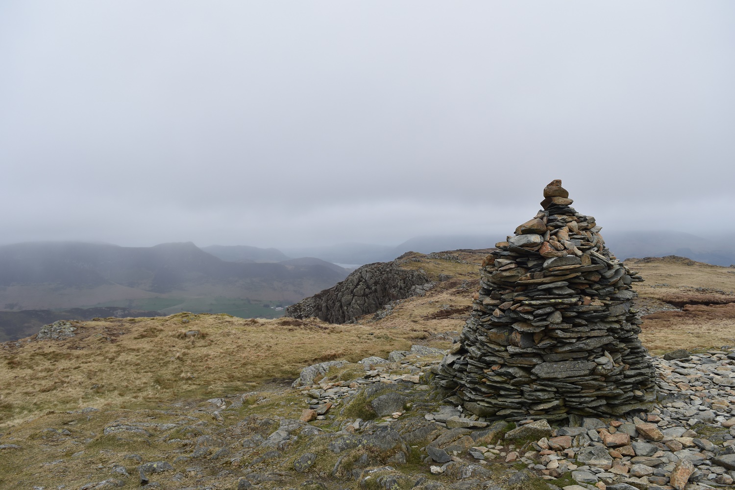 Maiden Moor summit, looking to a dark High Spy. Dale Head should be to the right but the cloud has dropped again!!