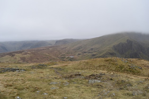 Hindscarth left (Scope End is in front) and Robinson to the right, both have cloud touching their summits as I set out. The car park is down there on the right