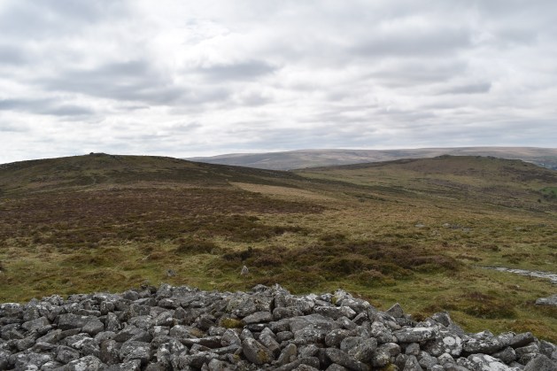 Corndon Tor summit, Sharp Tor is dead ahead with Venford Reservoir peeping out from behind Sharp Tor’s summit