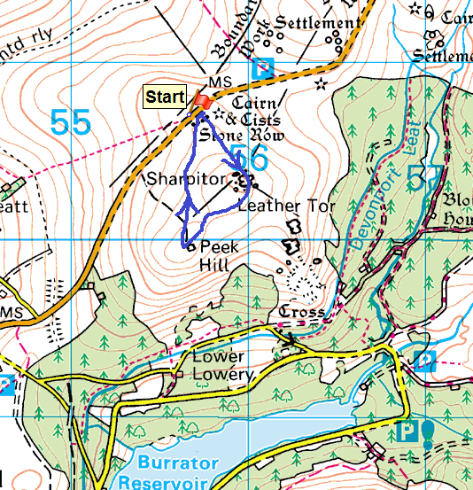 | Route – Sharpitor – Peek Hill – Sharpitor parking |