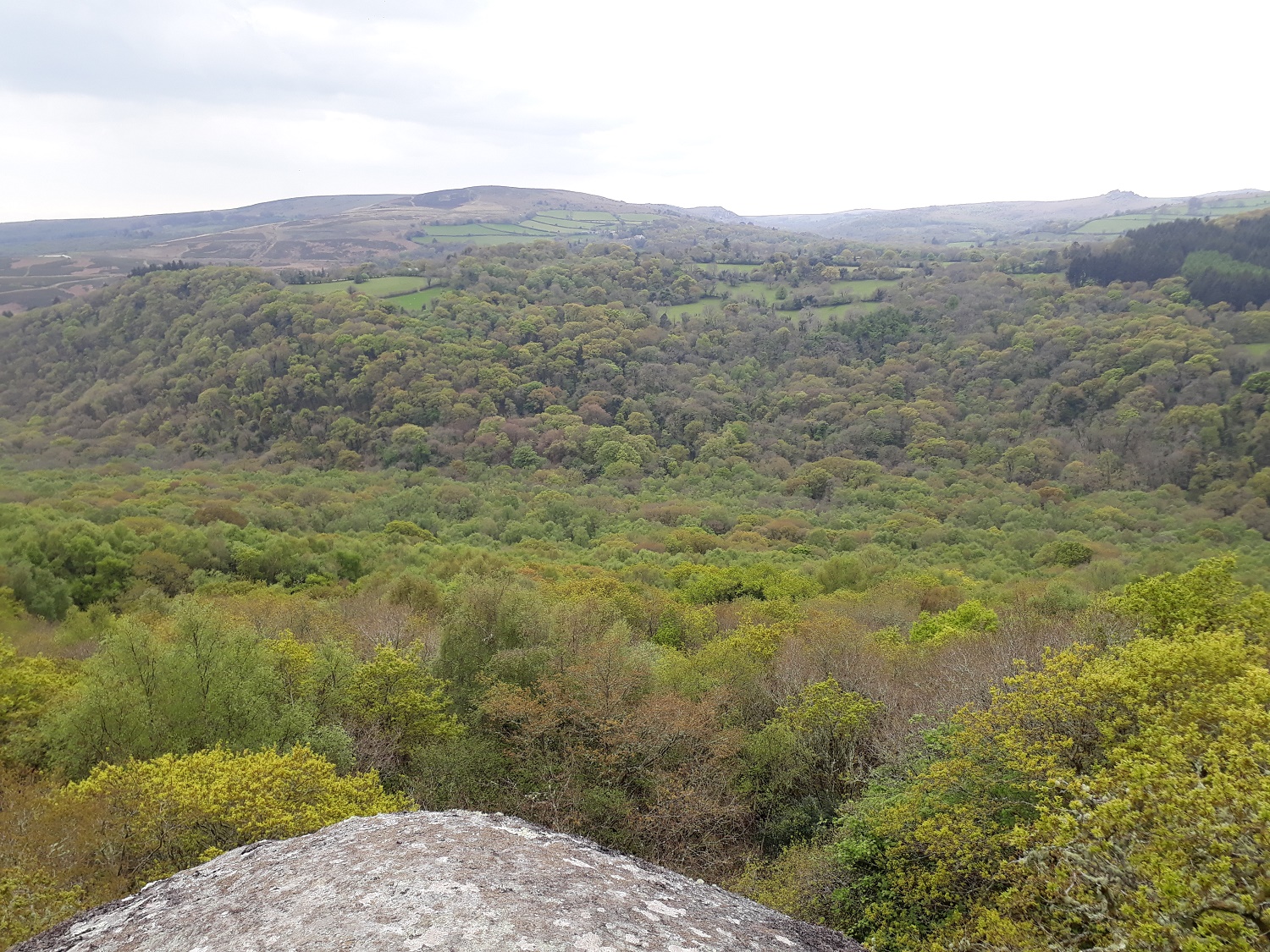 The views from in the cleave are restricted, but as you climb out the northern end up to Hunter’s Tor you get glimpses across to the tors to the west