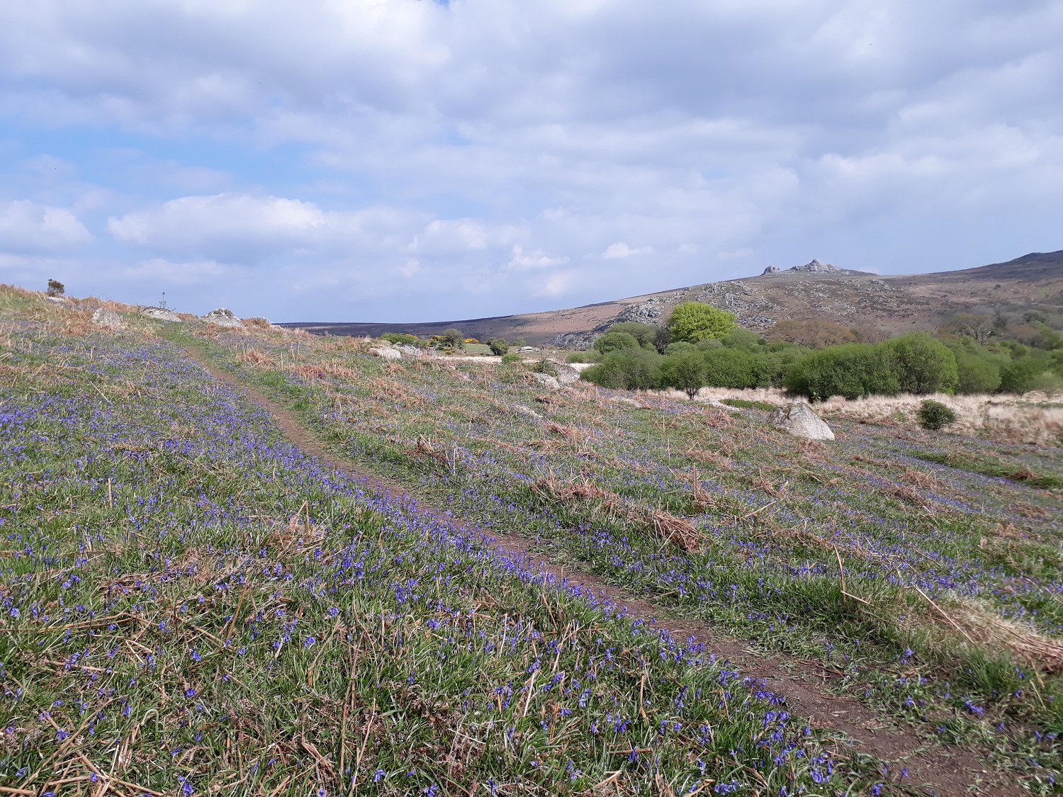 I’d come to see the bluebells, they weren’t as thick as you would get in the woods, nor as big. But there were lots of them, in big patches and the views across them to the surrounding tors are brilliant