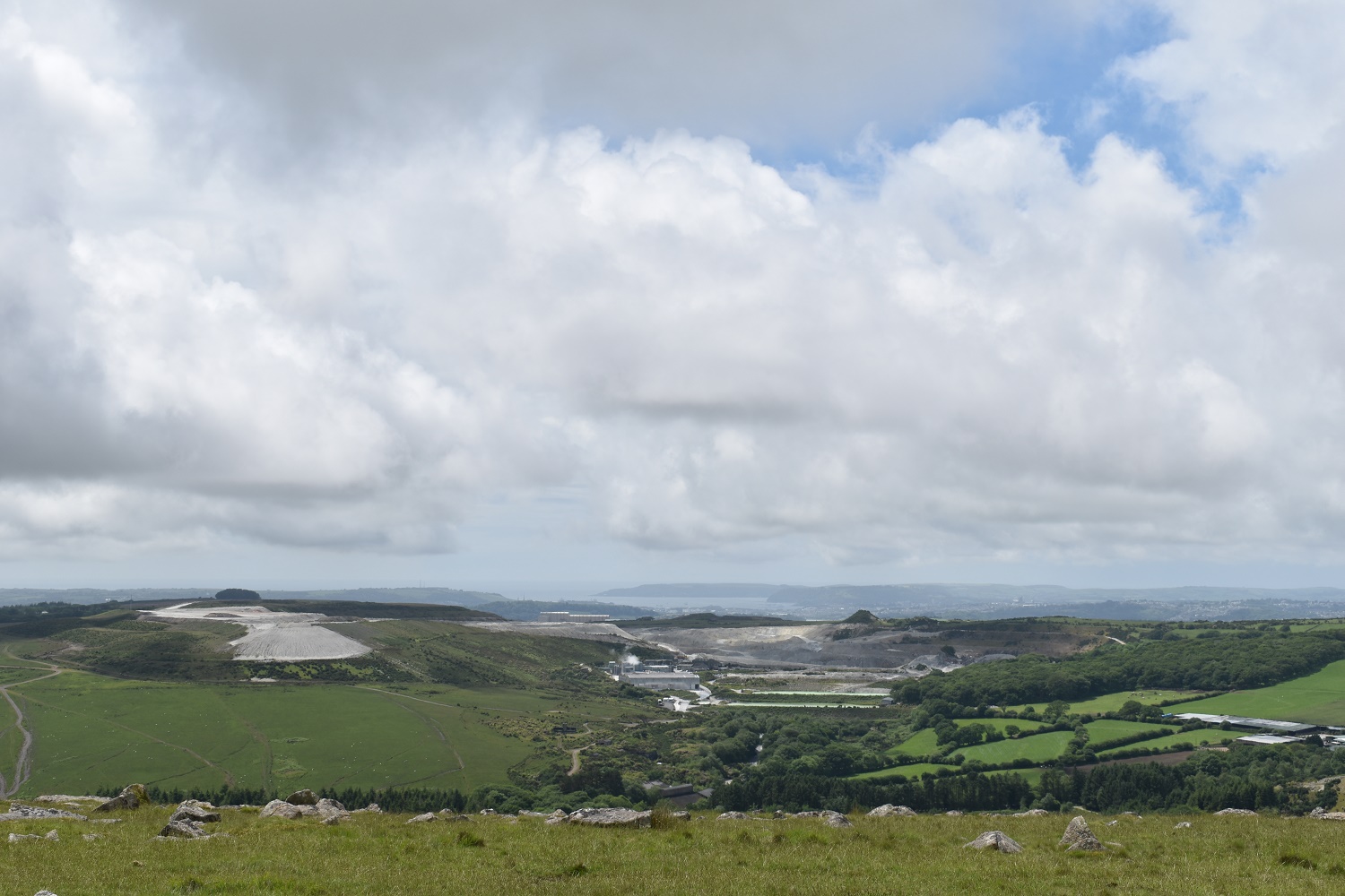 Its a steady plod up to Penn Beacon from Rook Tor and here I look across the clay pits again to Plymouth Sound