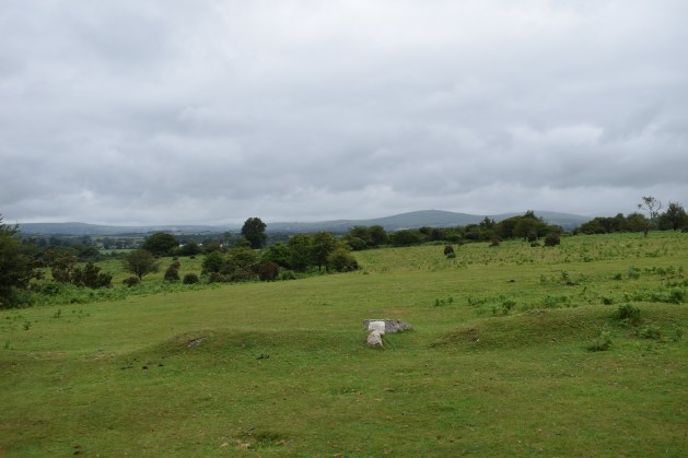 The winding track around this part, used only by farmers is a delight to walk with great views in all directions. This is north west, looking to Brent Tor on the left and Gibbet Hill right