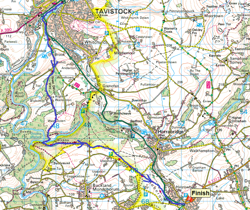 | Route – Lydford Castle and Church – Lydford Gorge – Black Down – Mary Tavy – Mary Tavy Church – Harford Bridge – Tavistock – West Down – Double Waters – Virtuous Lady Crags – Buck Tor – Roborough Down – Yelverton – The Rosemont B&B |