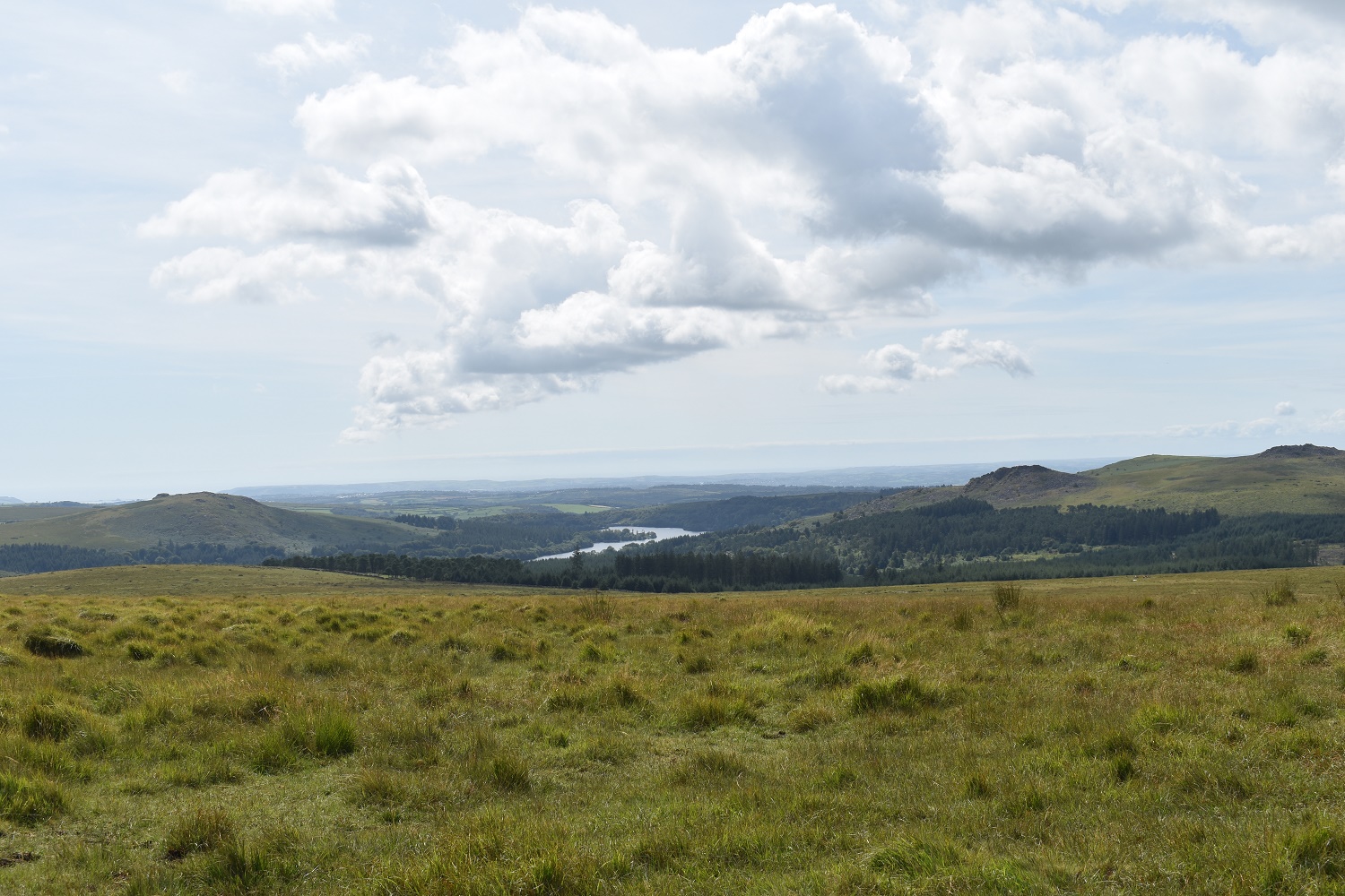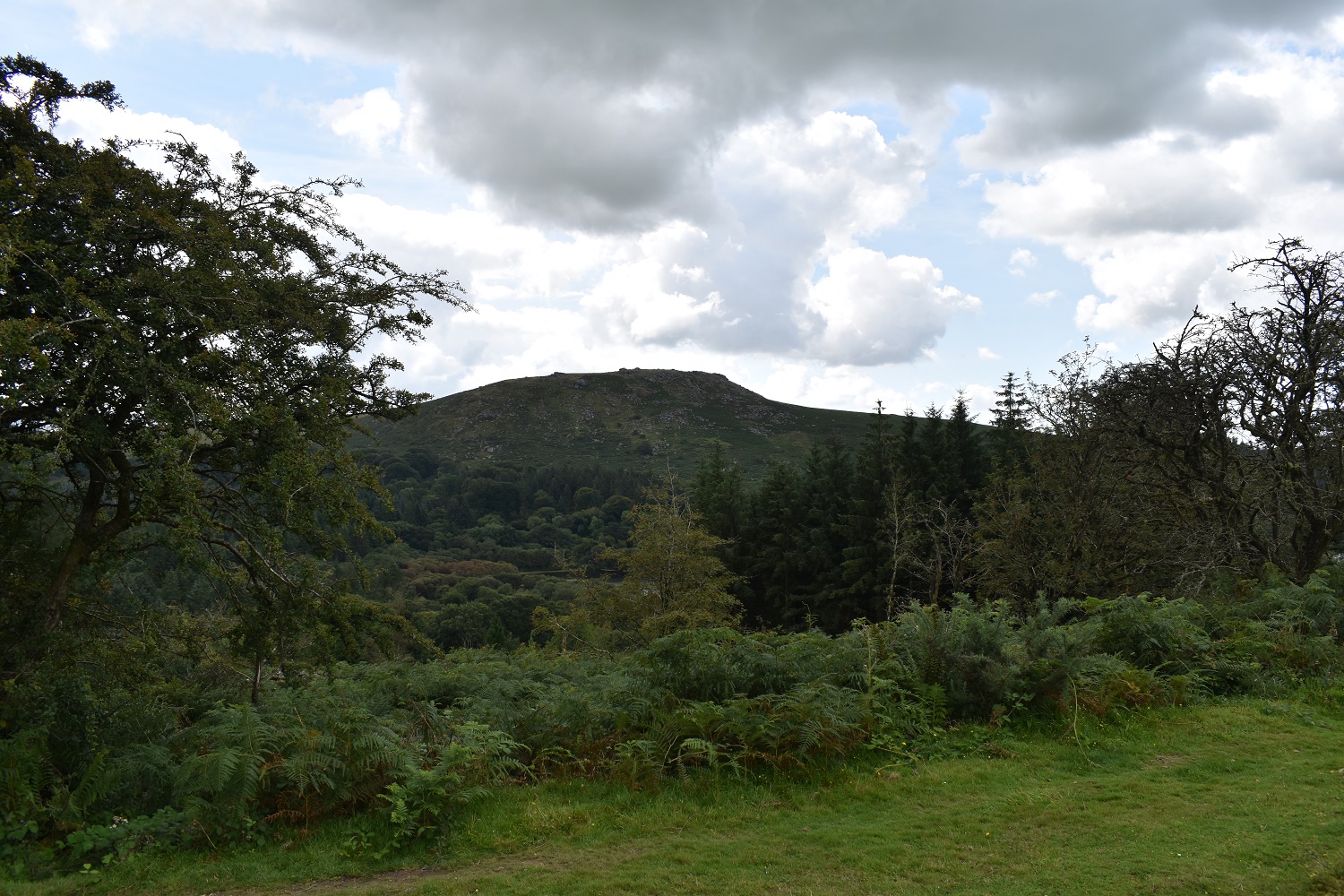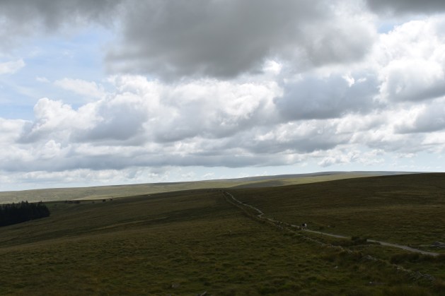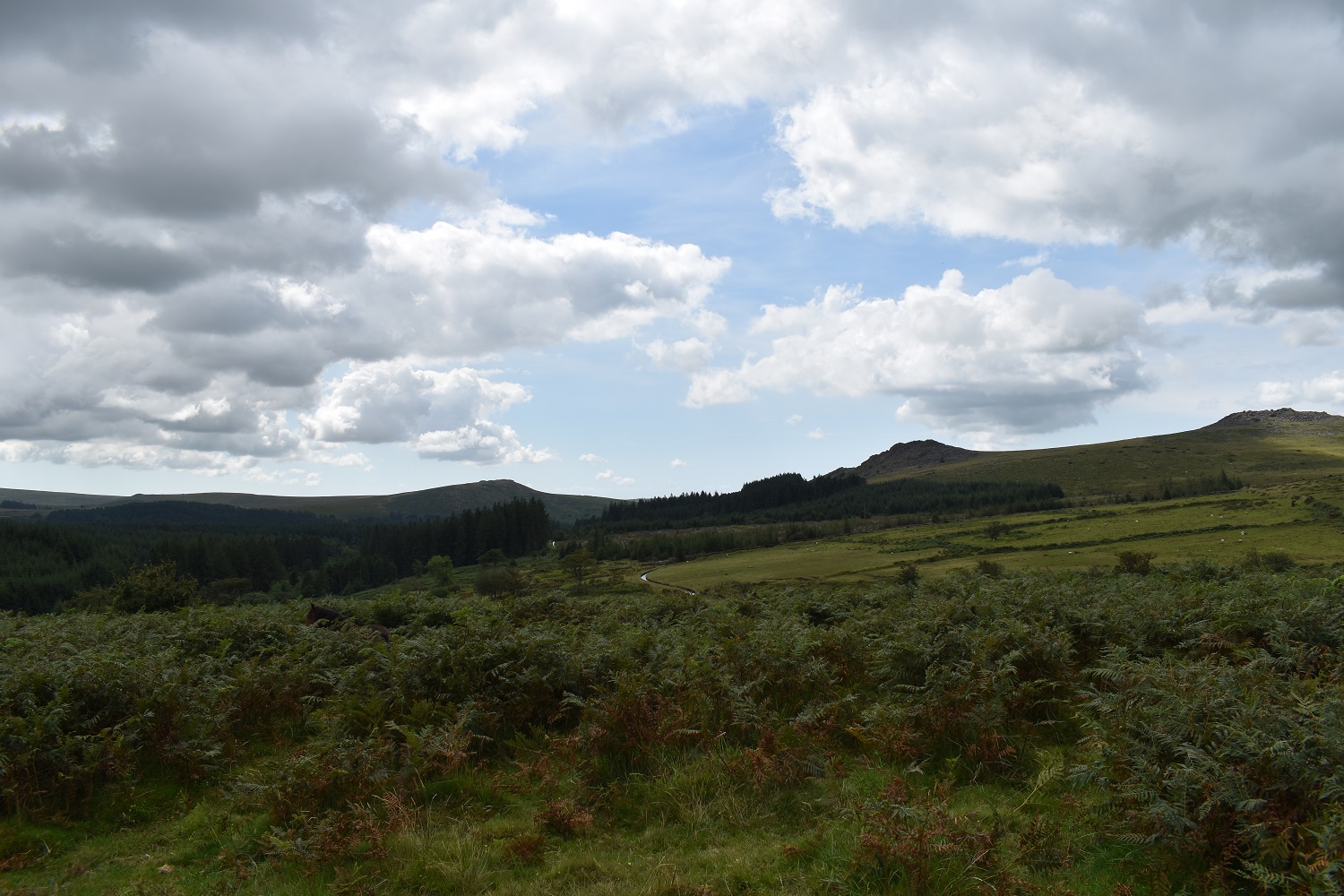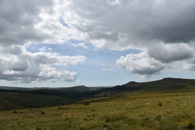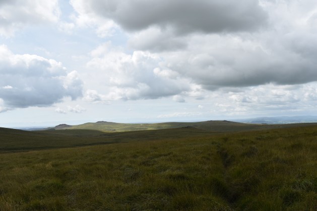 Out on to open moorland now and I look back to Sheeps Tor left then Leather Tor, with Sharpitor far right