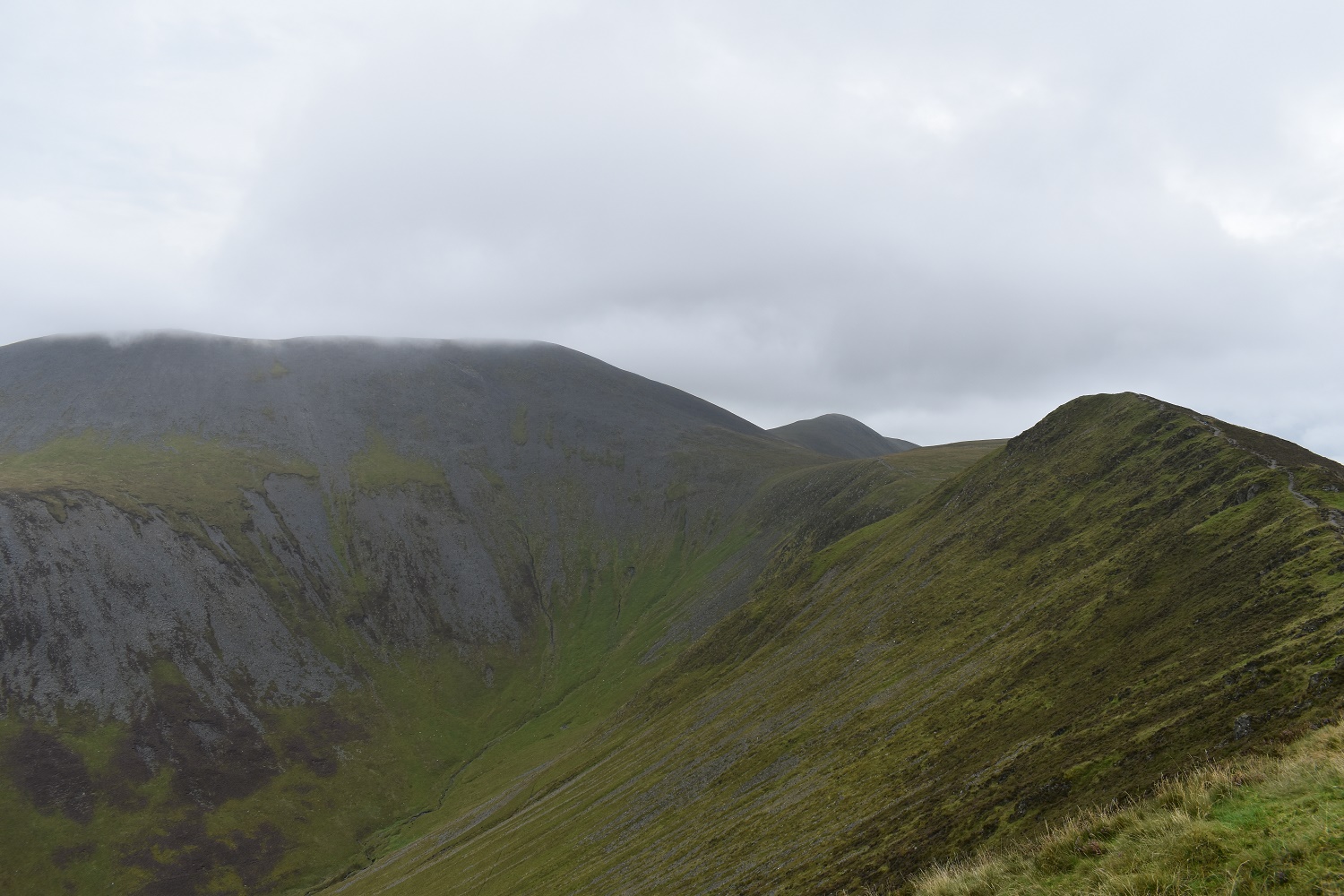 Skiddaw is now in cloud, with Longside Edge running to the right